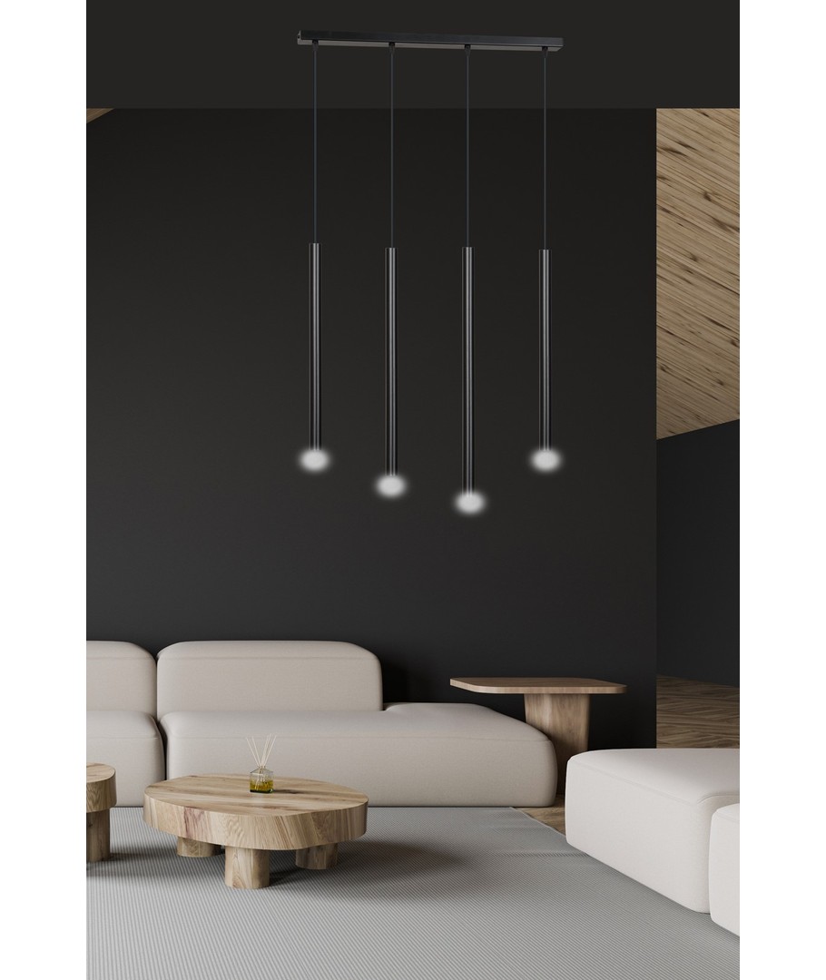 Oppgrader hjemmet ditt med den elegante Selter 4 Svart pendellampe. Denne lampen passer perfekt for de som ønsker en kombinasjon av moderne design og funksjonalitet. Den gir et stilrent preg til både stue og spisestue.