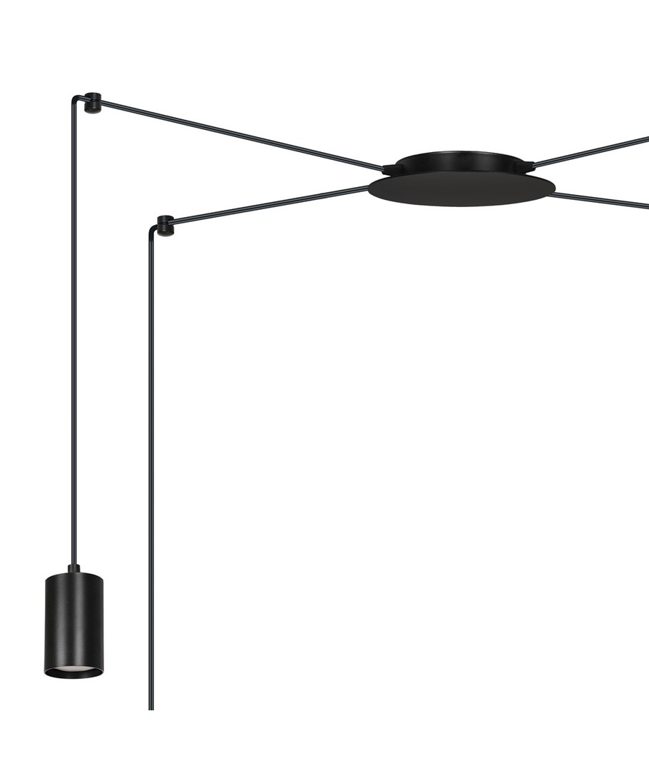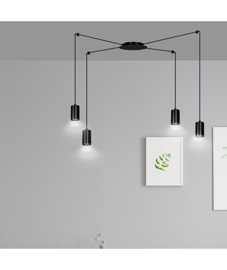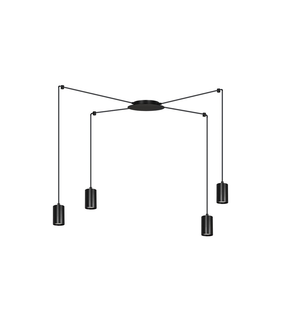Traker 4/Svart pendellampe er en moderne taklampe designet som en "edderkopplampe", som med sine lange ledninger gir ubegrensede muligheter for kreativ innredning. Denne lampen er ideell for høye takrom, hvor den fremhever rommets moderne karakter og sikrer en myk, behagelig belysning. De stilige metalrør og det enkle, men originale designet gjør Traker til et elegant valg som passer perfekt inn i minimalistiske miljøer.