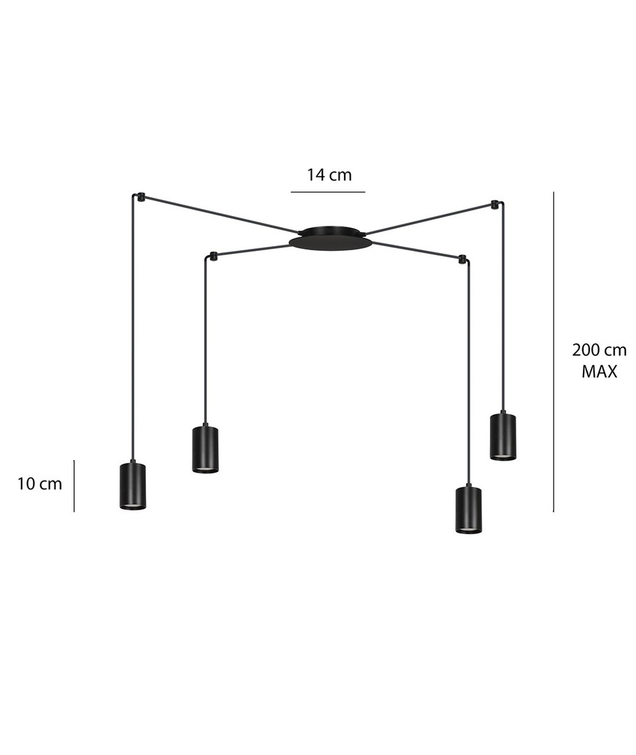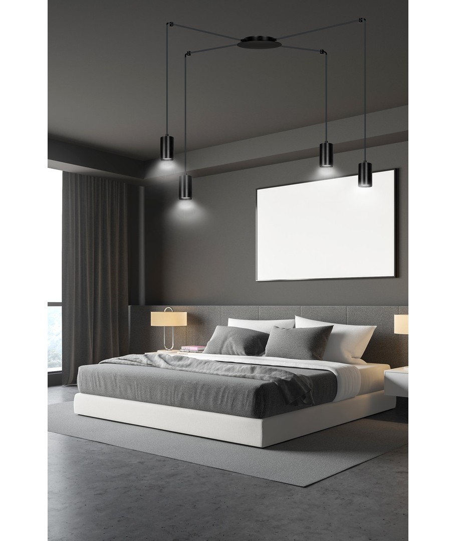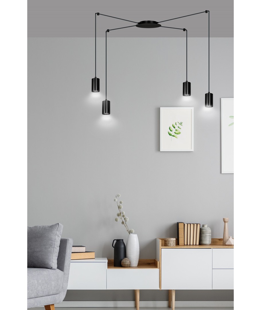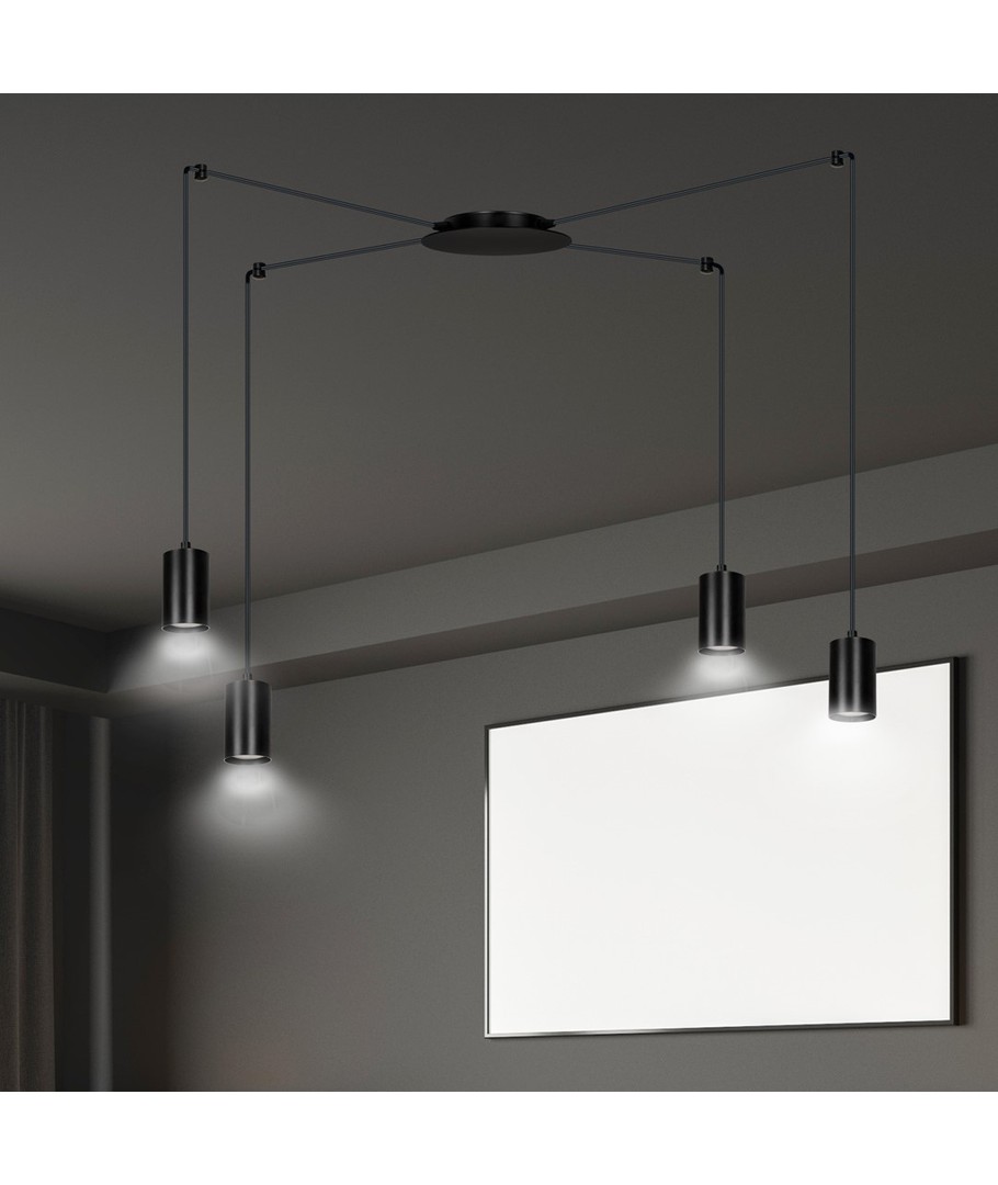 Traker 4/Svart pendellampe er en moderne taklampe designet som en "edderkopplampe", som med sine lange ledninger gir ubegrensede muligheter for kreativ innredning. Denne lampen er ideell for høye takrom, hvor den fremhever rommets moderne karakter og sikrer en myk, behagelig belysning. De stilige metalrør og det enkle, men originale designet gjør Traker til et elegant valg som passer perfekt inn i minimalistiske miljøer.