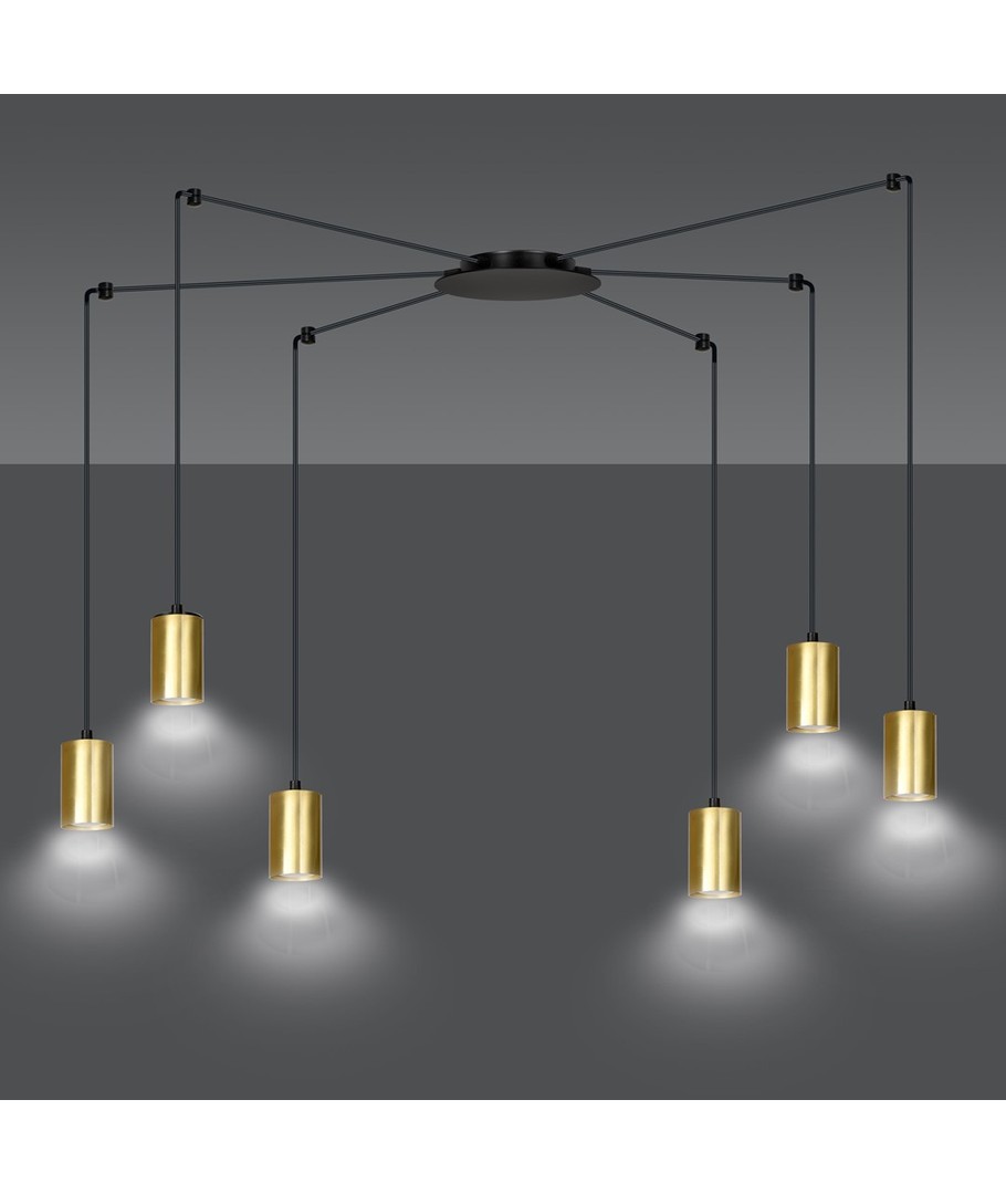 Innfør en følelse av moderne eleganse i hjemmet ditt med vår Traker 6 Sort/Gull pendellampe. Denne pendellampen kombinerer stil og funksjonalitet, noe som gjør den til en ideell løsning for å lyse opp ethvert rom.