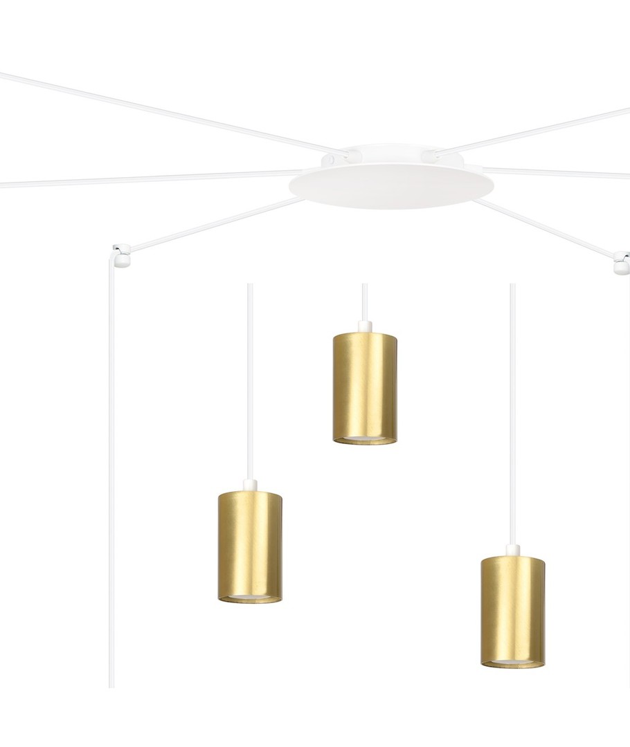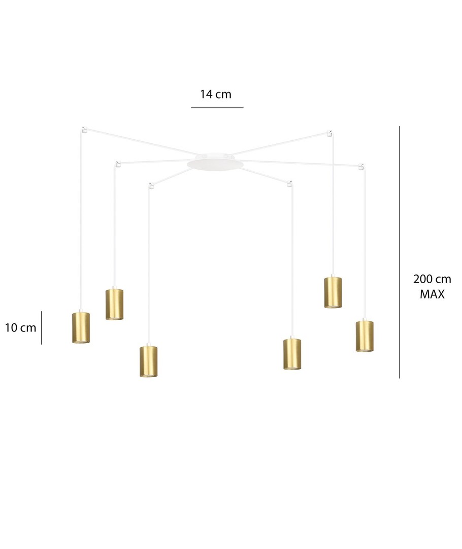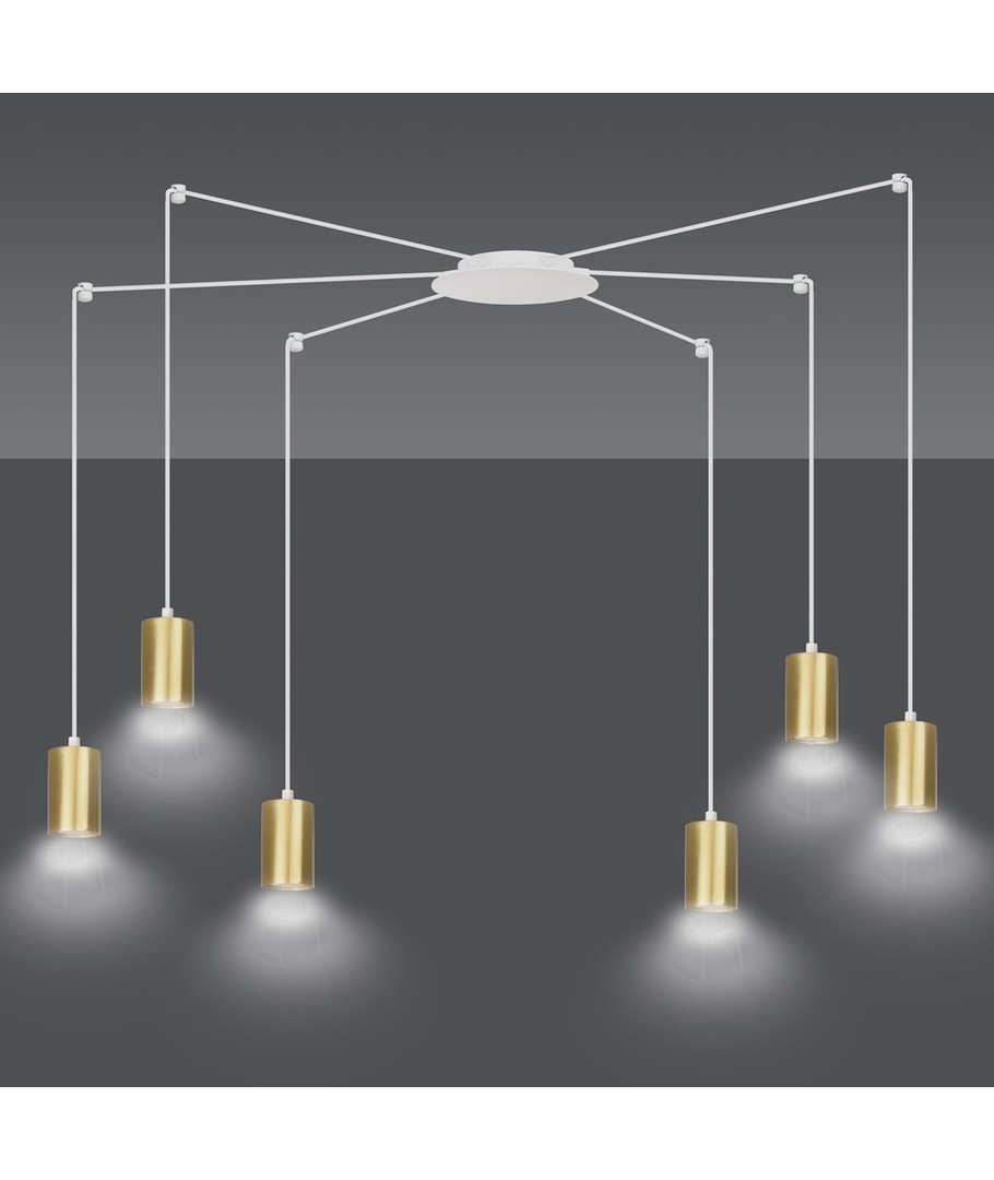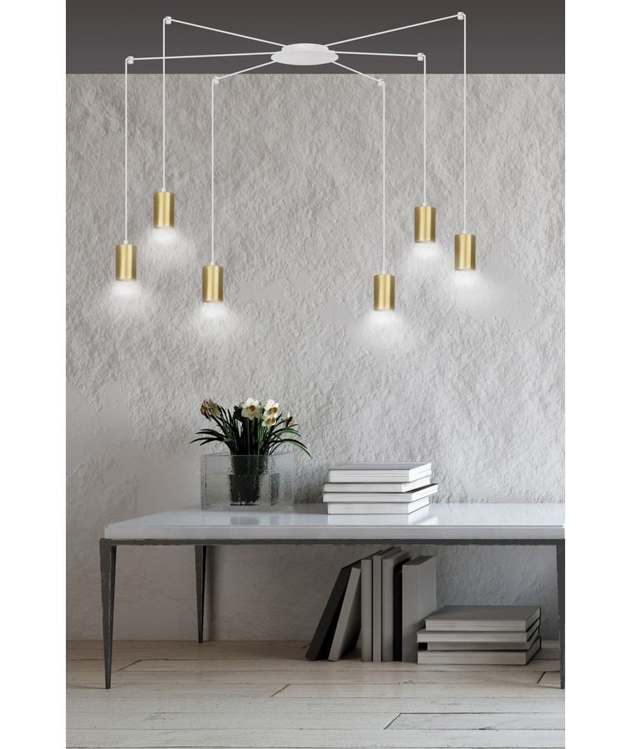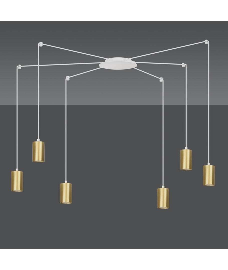 Traker 6 pendellampe i hvitt og gull er en unik tillegg til ethvert moderne hjem. Denne edderkopplignende taklampen imponerer med sine lange, justerbare ledninger, som gir utallige muligheter for ordning. Lampens design er ideelt for romslige lofts-hjem, hvor den fremhever den moderne innredningen og skaper en fengslende belysning. De stilige metallrørene tilfører rommet eleganse, mens den enkle, men originale stilen gjør lampen til et blikkfang.