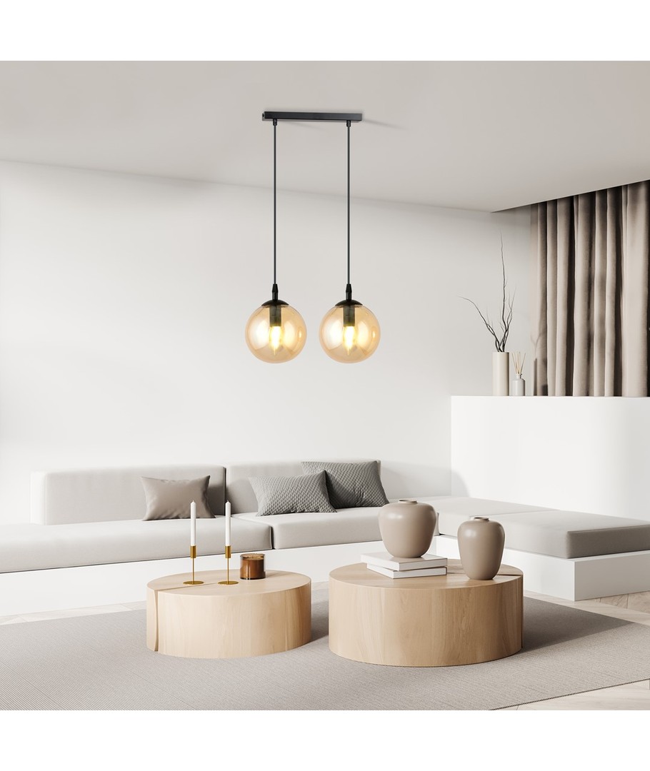 Forvandle ditt hjem med en moderne touch ved hjelp av denne sofistikerte Cosmo 2 Sort/Amber pendellampen. Denne lampen kombinerer et slankt design med funksjonalitet, og er perfekt for å gi ethvert rom et stilrent uttrykk.