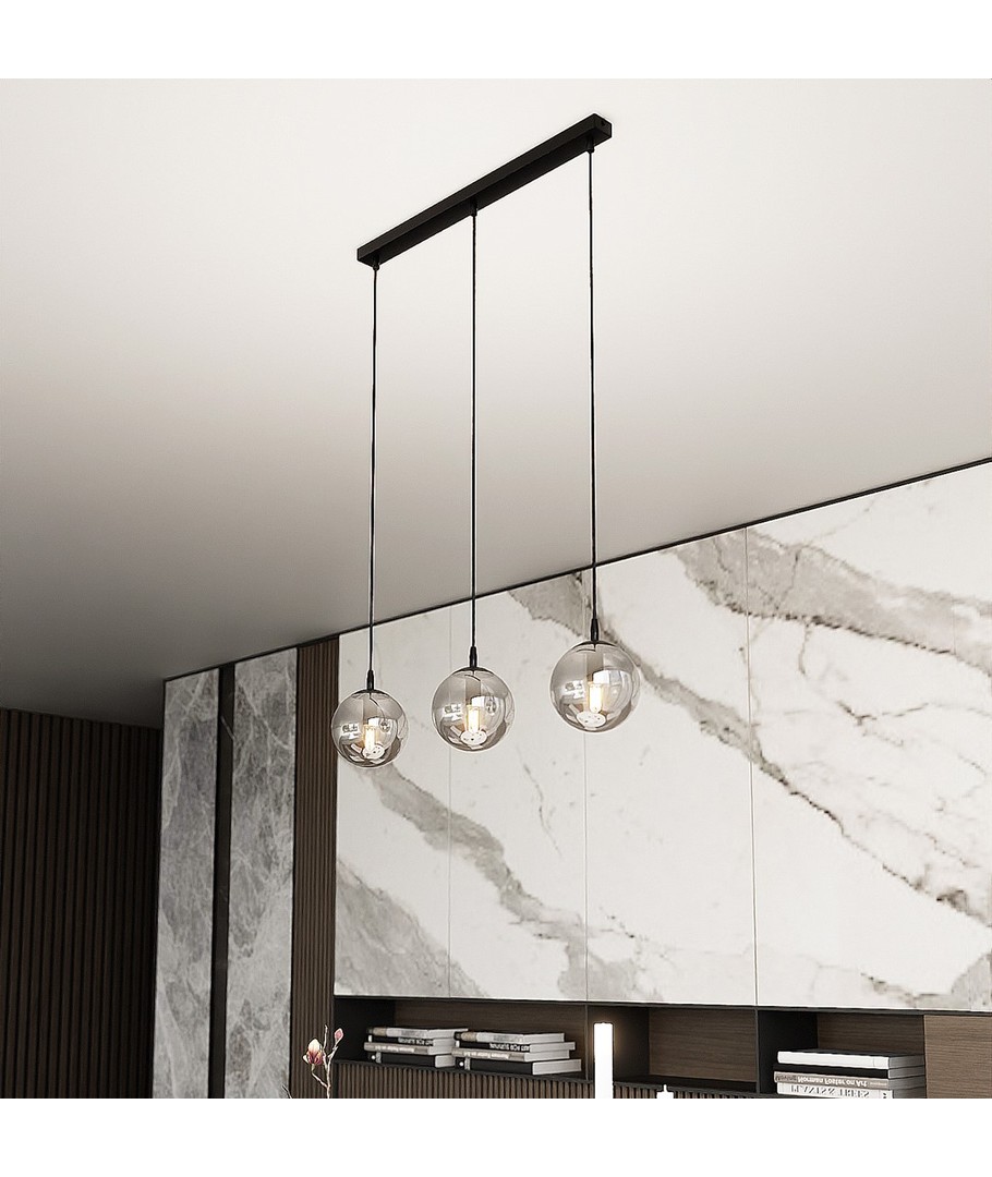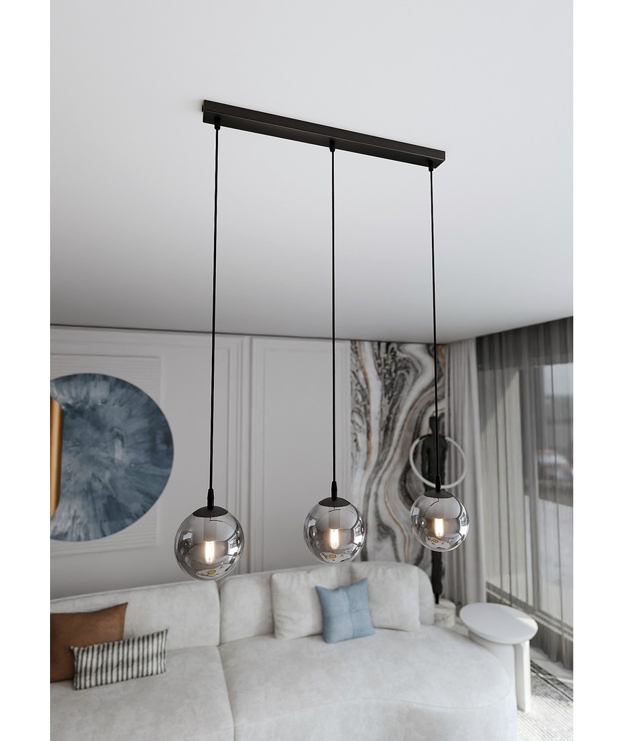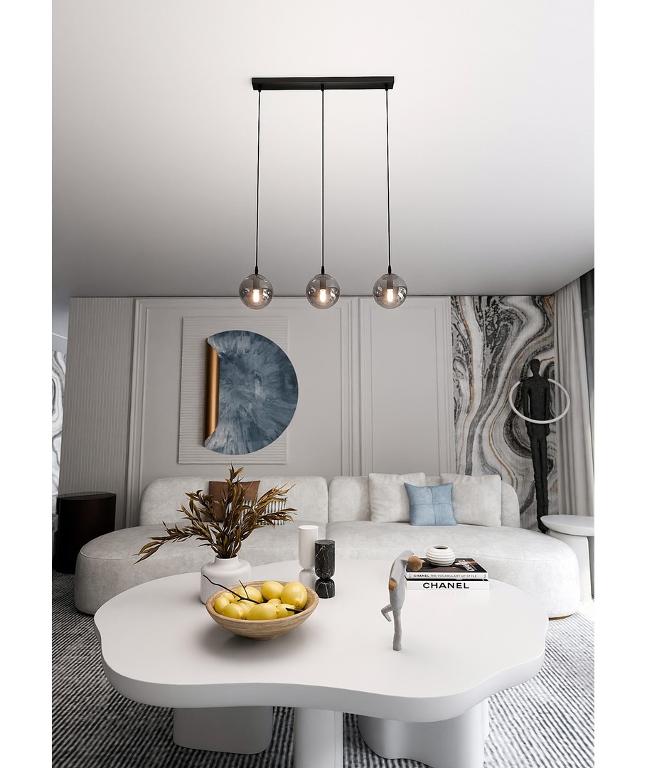 Opplev den tidløse elegansen i vår Cosmo 3 Sort/Grafit pendellampe. Denne lampen kombinerer minimalistisk design med moderne trender, noe som gjør den perfekt for ethvert rom. De trendy glasskjermene sikrer en fremragende belysning, mens den allsidige stilen gjør lampen lett å integrere i både klassiske og moderne interiører.