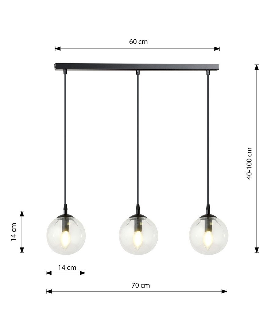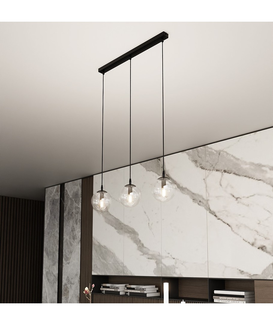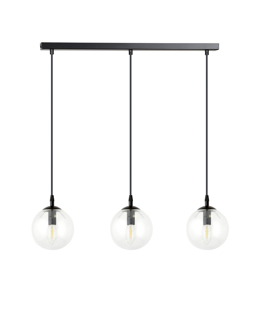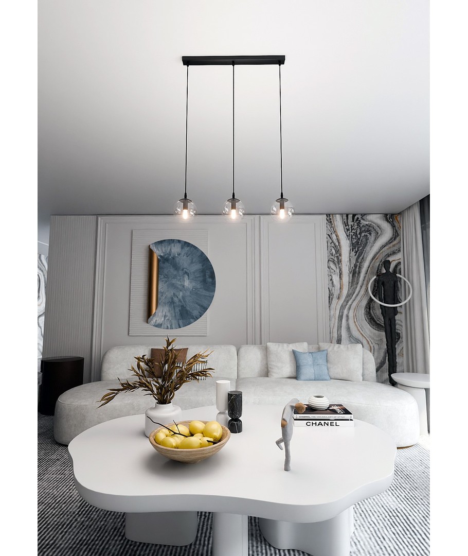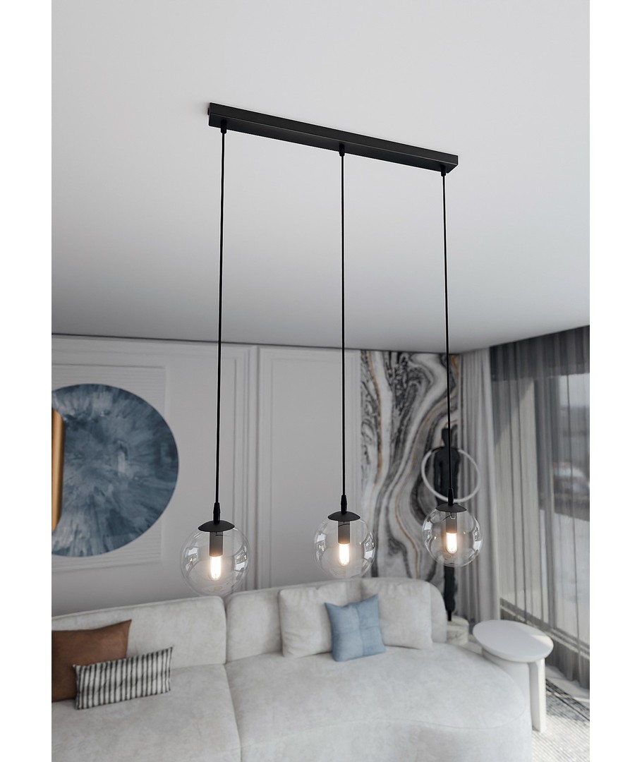 Cosmo 3 Sort/Transparent pendellampen er en del av den allsidige og tidløse COSMO-serien, som passer perfekt til moderne interiørstil. Dens minimalistiske design kombinerer eleganse med funksjonalitet, noe som gjør den ideell for enhver innredning. De trendy glasskjermene sikrer optimal belysning og skaper en varm atmosfære i rommet. Cosmo-seriens fokus på både estetikk og praktisk bruk gjør den til et populært valg for de som ønsker kvalitet og stil i hver detalj.