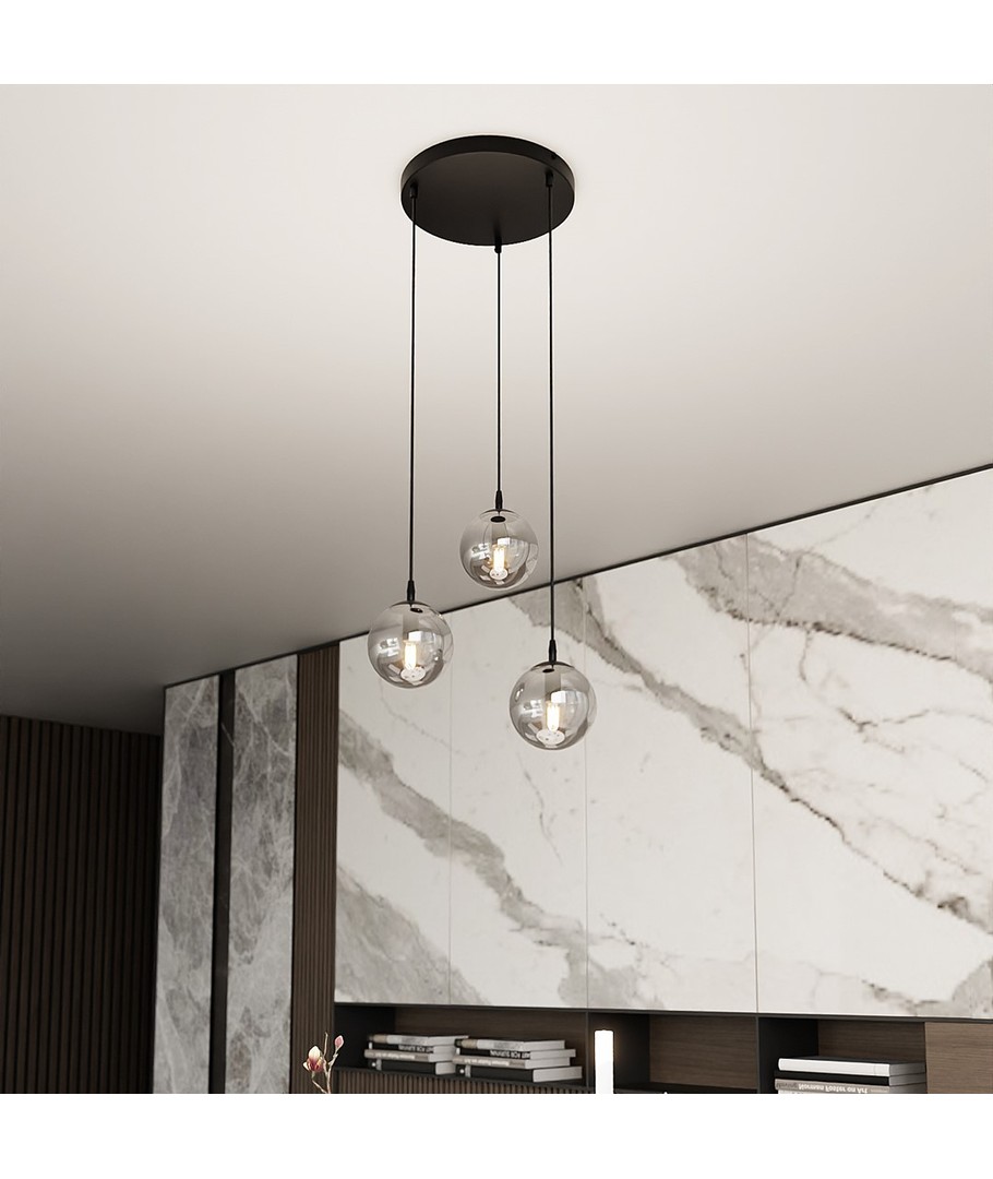 Cosmo 3 Sort Premium Grafit pendelampe er den perfekte tillegg til ethvert moderne hjem med sitt stilrene design og enkle eleganse. Med sine tre dekorative glasskjermer i grafitt får du en lampe som ikke bare følger de nyeste innredningstrendene, men som også tilfører en tidløs sjarm til rommet. Den pulverlakkerte stålfoten sikrer en robust konstruksjon, mens den variable høyden gjør det lett å tilpasse lampen til dine behov. Denne pendellampen gir et behagelig lys og skaper en koselig atmosfære, som er ideell både ved spisebordet og i stuen.