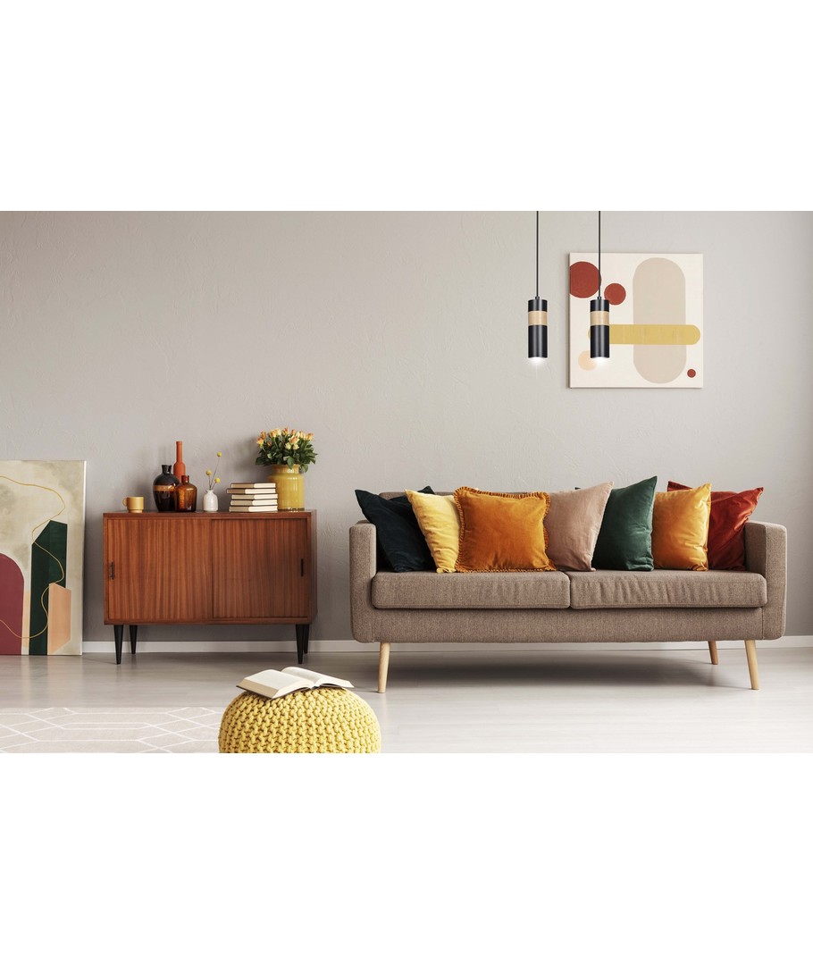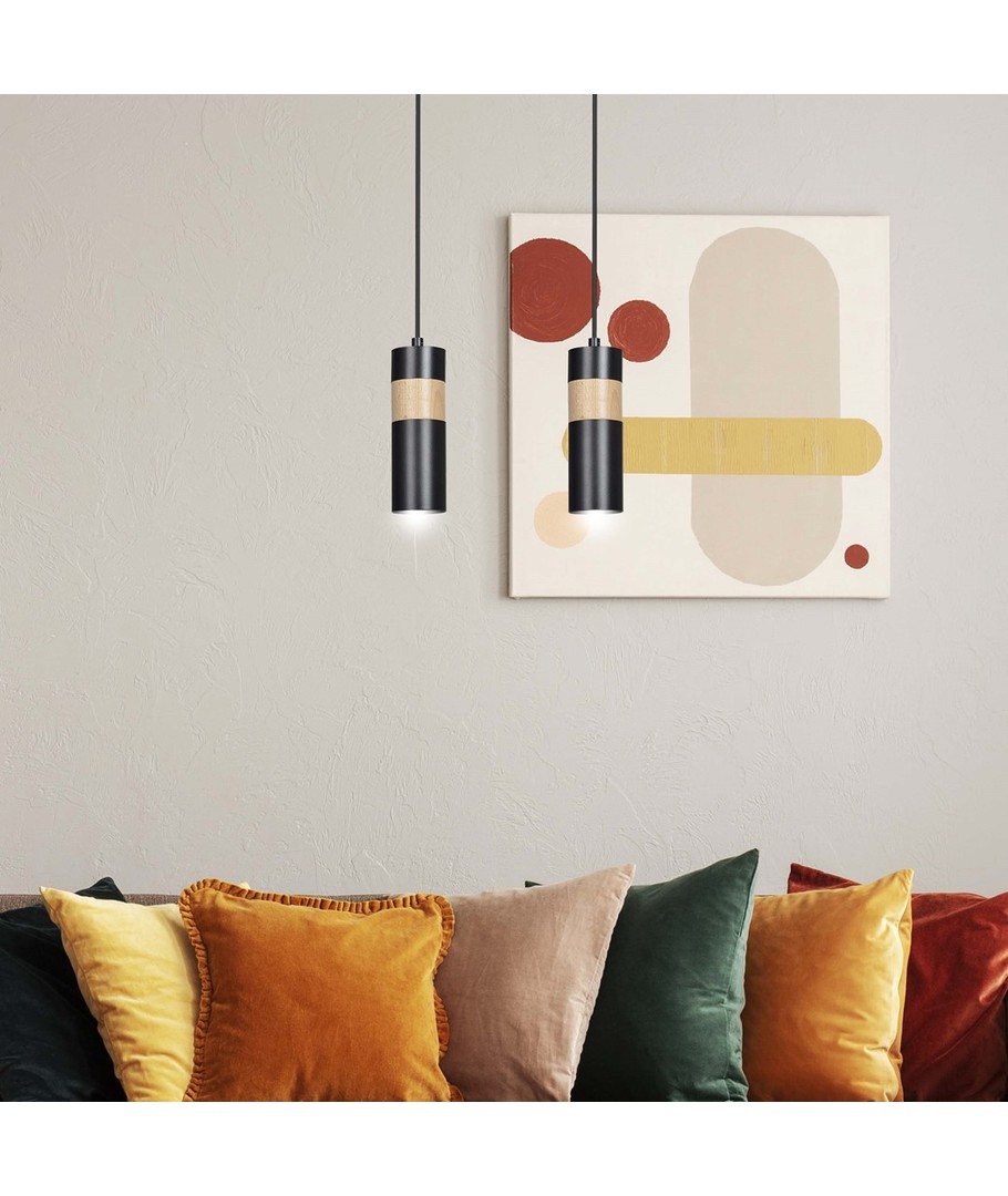 Akari 2 Sort pendellampe er en stilfull og moderne belysningsløsning, som kombinerer enkelhet med eleganse. Med sin rørformede konstruksjon og bruk av både pulverlakkert stål og treelementer, tilbyr lampen en raffinert estetikk, som passer perfekt inn i forskjellige innredninger. Den er ideell for bruk i stua, soverommet eller kjøkkenet, hvor den fremhever rommets karakter med sitt elegante design. Akari 2 er skapt for å belyse og pynte ethvert rom uten å ta fokus fra den eksisterende innredningen.