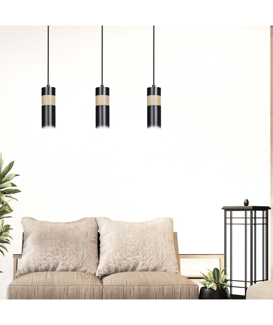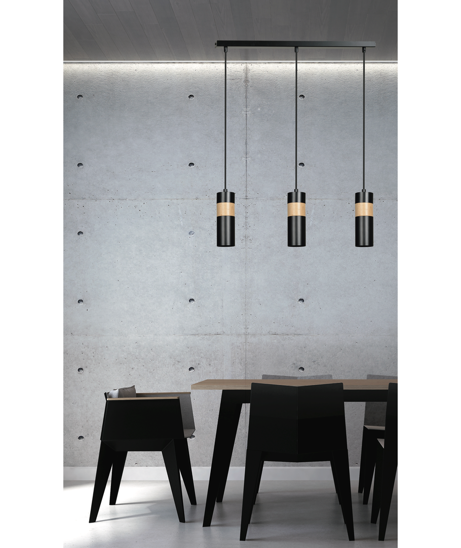 Akari 3 Sort pendellampe kombinerer stil og funksjon i en elegant, sylinderformet konstruksjon. Denne designerlampen er laget av pulverlakkert stål med vakre treelementer, som sammen skaper et moderne utseende som passer inn i forskjellige interiørstiler. Lampens høyde er justerbar, noe som gjør den til et ideelt valg for både stuer, soverom og kjøkken. Enten du søker en diskre eller iøynefallende belysning, vil Akari 3 Sort pendellampe oppfylle dine behov med stil og eleganse.