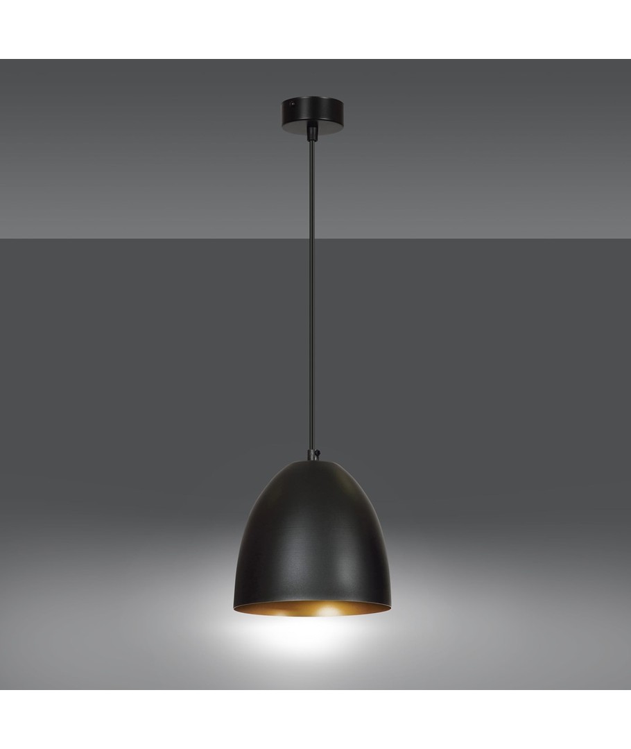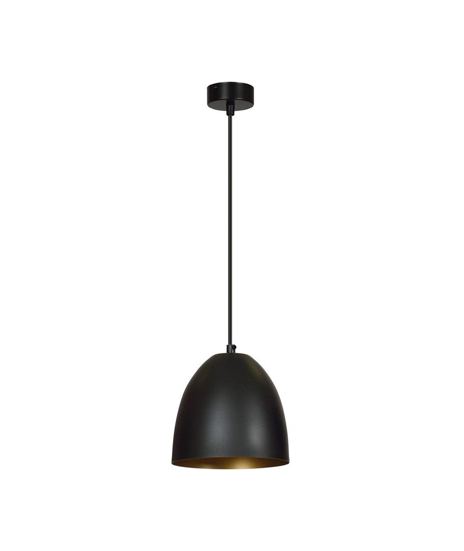 Skap en stilren atmosfære i ditt hjem med denne elegante pendellampen. Med sitt tidløse design i sort og gull tilfører lampen et luksuriøst preg til ethvert rom.