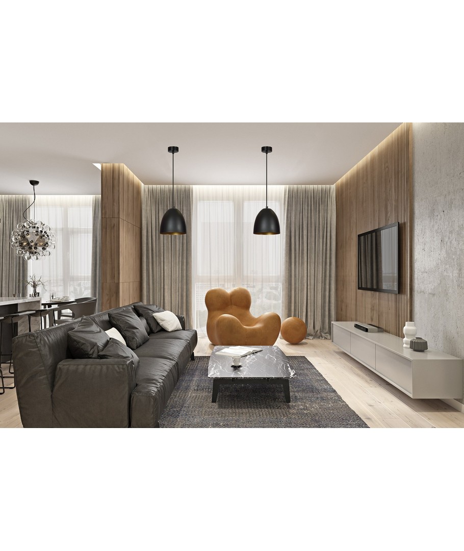 LenoX 1 Sort / Gull pendellampe er en moderne belysningsløsning som kombinerer elegant design med funksjonalitet. Den store, åpne metallskjermen har en unik stil som tilfører en sofistikert estetikk til ethvert rom i hjemmet. Med en robust konstruksjon av pulverlakkert stål, er denne lampen ikke bare en stilig dekorasjon, men også en effektiv lyskilde. LenoX-serien er kjent for sin enkle form, som gjør det enkelt å integrere i mange forskjellige interiørstiler.