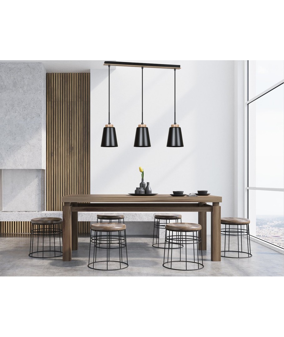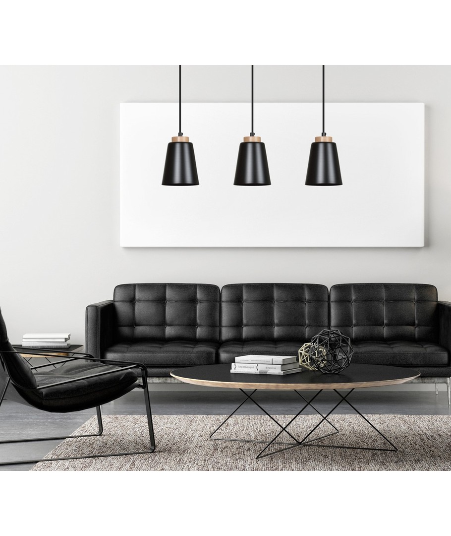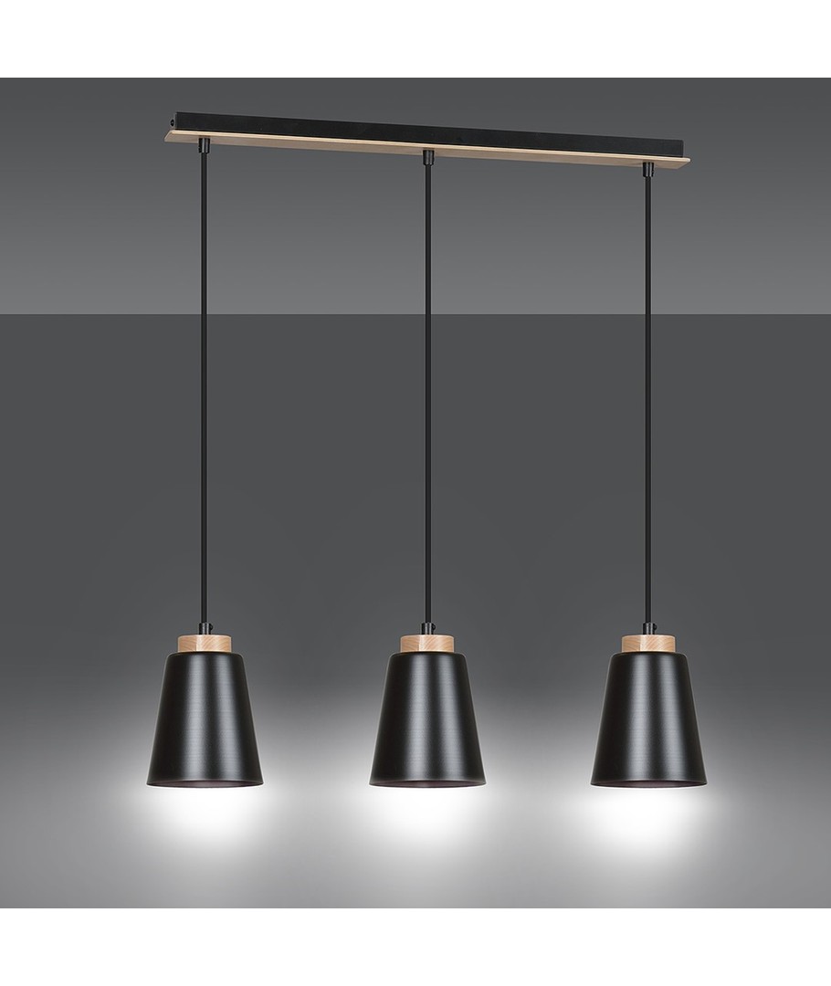 Bolero 3 Sort pendellampe er en stilig belysningsløsning som forener skandinavisk design med moderne funksjonalitet. Denne pendelen er ideell for stuen, soverommet eller hjemmekontoret, hvor den tilfører et unikt preg med sin karakteristiske fargekombinasjon av svart og tre. Bolero-lampen er designet med fokus på detaljer og tilbyr en behagelig atmosfære som gjør ethvert rom mer innbydende. Dens klassiske linjer og nøytrale farger gjør det enkelt å integrere lampen i forskjellige interiørstiler, noe som gir mange muligheter for personlig tilpasning.