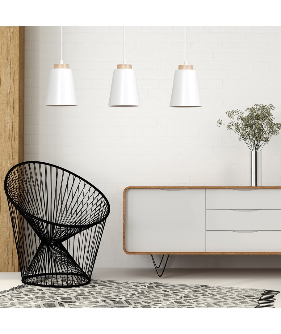 Bolero 3 Hvit pendellampe bringer skandinavisk eleganse inn i ditt hjem med sitt enkle og moderne design. Det er den perfekte belysningsløsningen til stuen, soverommet eller hjemmekontoret. Lampens kombinasjon av klassiske hvite nyanser med stilige treelementer skaper en varm og innbydende atmosfære som tilfører karakter til ethvert rom. Med Bolero-seriens tidløse design og allsidige fargepalett åpner den et mangfold av muligheter for innredning, og den kan enkelt integreres i et bredt utvalg av boliginnredninger. Lampens presise detaljer understreker dens høye kvalitet og gjør den til en unik tillegg til ditt hjem.