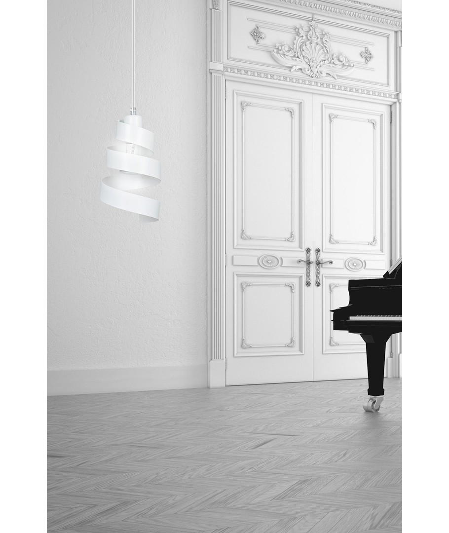 Med dens justerbare høyde gir denne lampen fleksibilitet til enhver opphengning. Den rene hvite fargen harmonerer lett med forskjellige innredningsstiler, og det pulverlakkerte stålet sikrer holdbarhet og eleganse. Merk at lyskilde ikke følger med, så du kan velge den belysningen som passer best til dine behov.