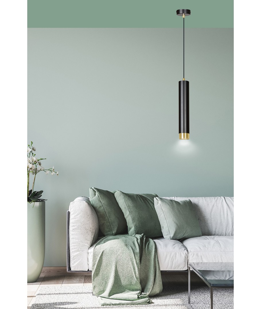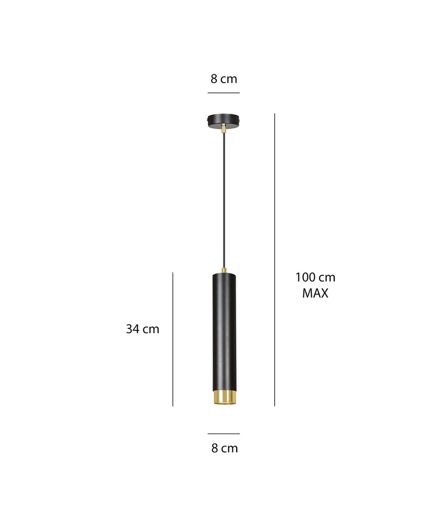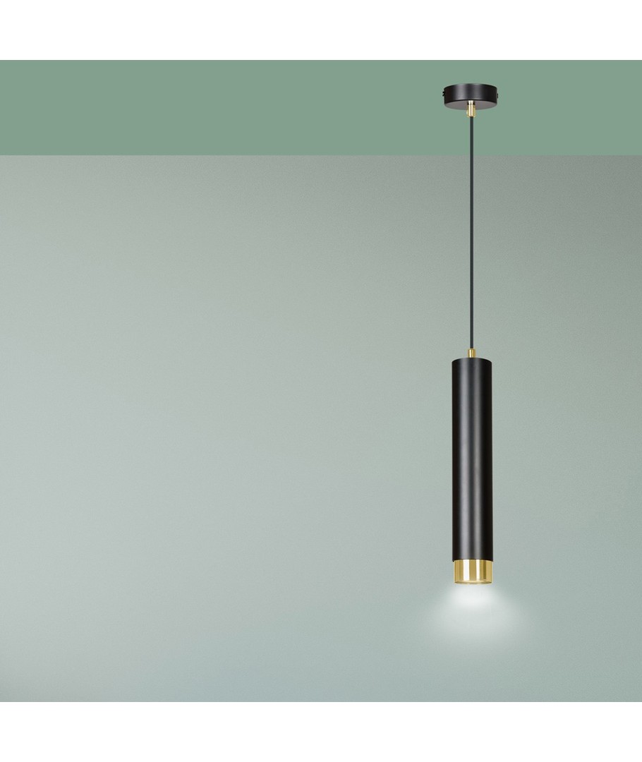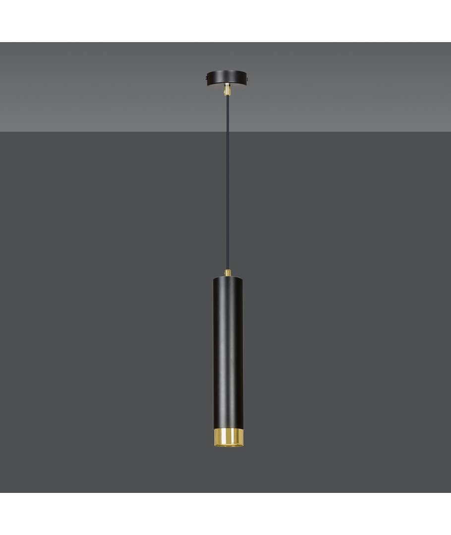 Kibo 1 Sort/Gull pendellampe er en elegant og moderne lampe, som passer perfekt inn i ethvert hjem. Designet med en trendy, tubular konstruksjon, er denne lampen ideell for å skape et stilfullt lys i stuen, kjøkkenet eller hjemmekontoret.