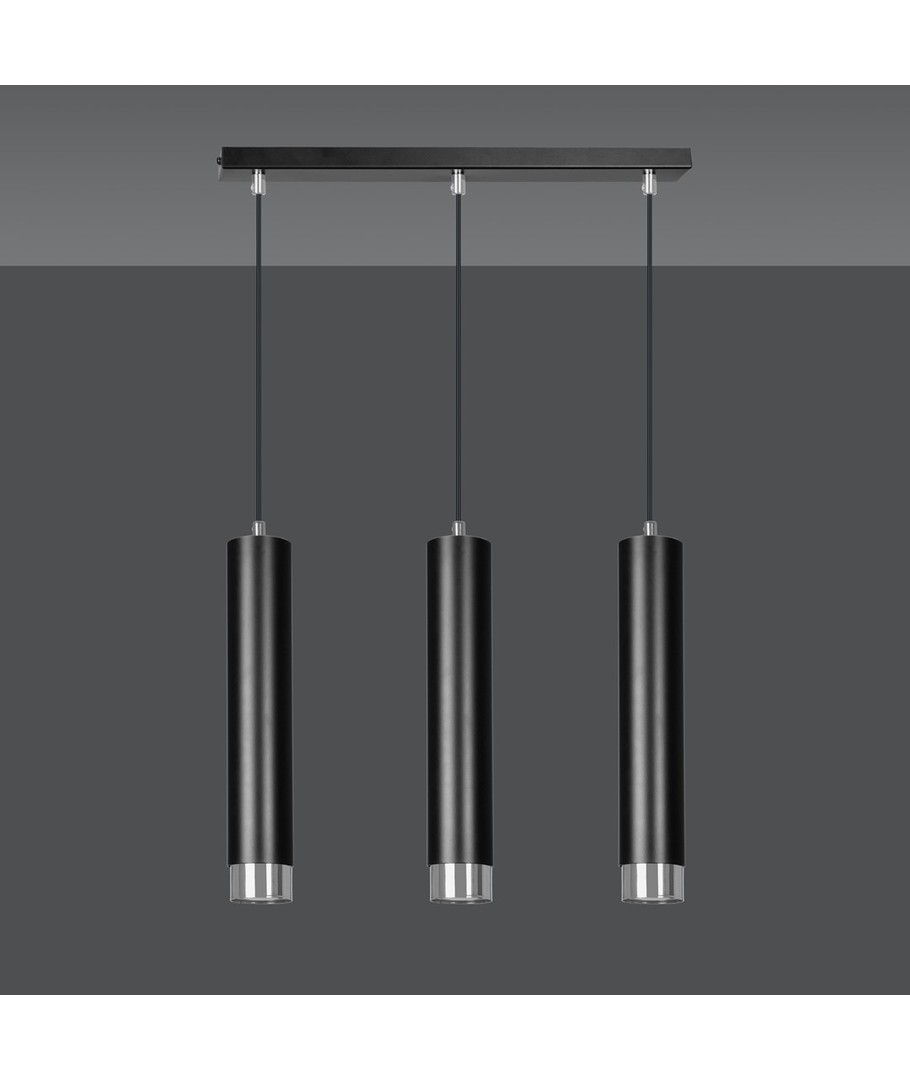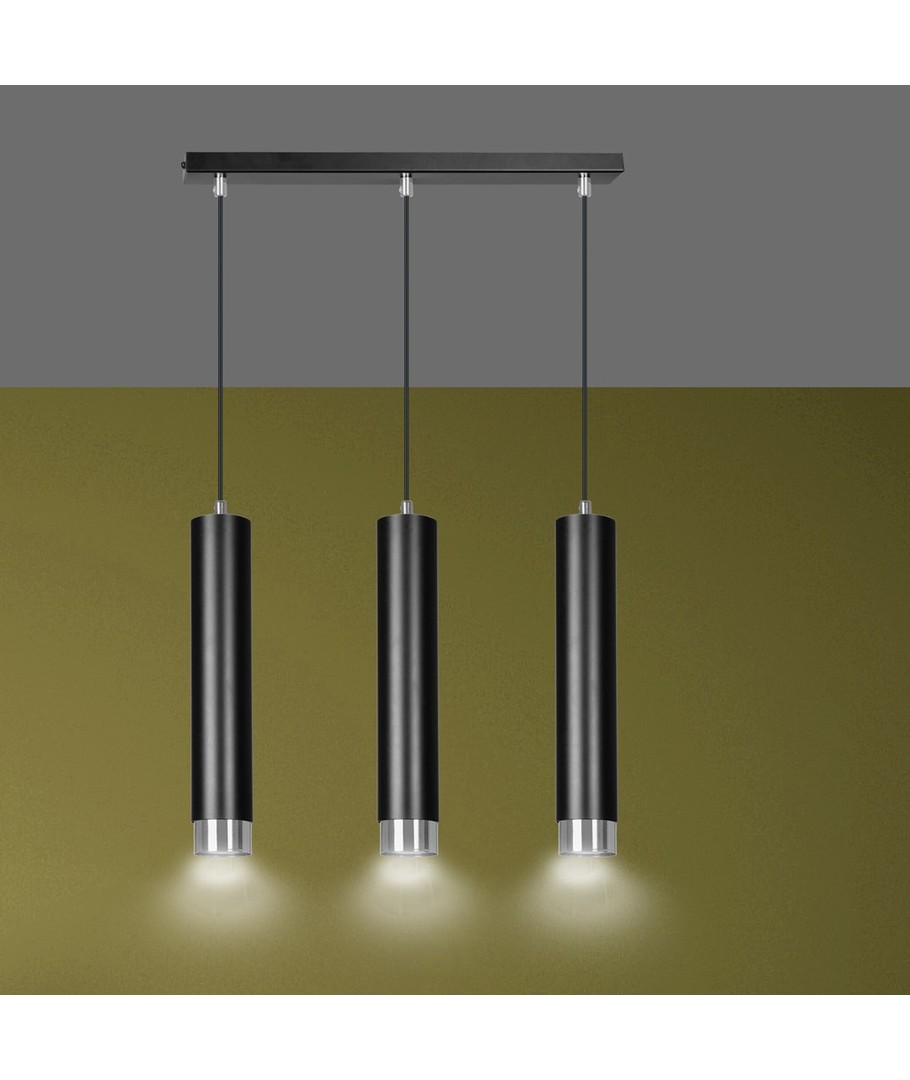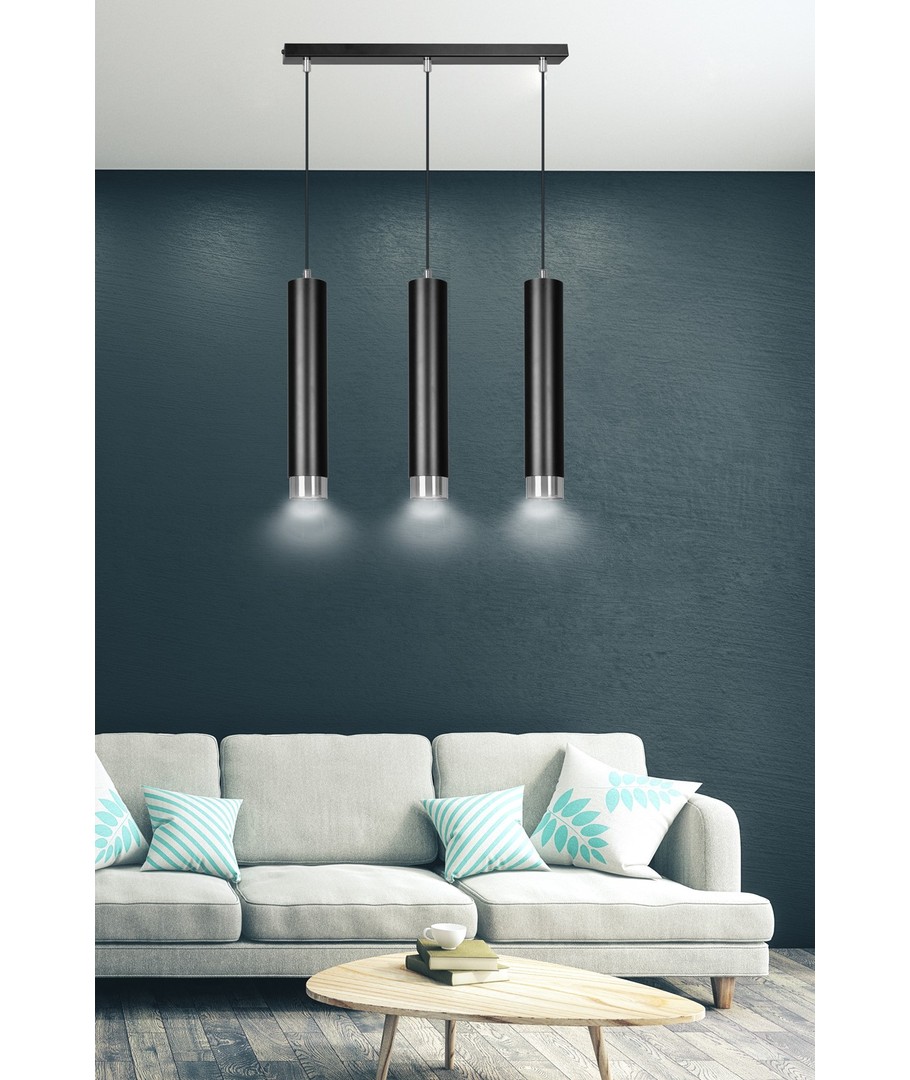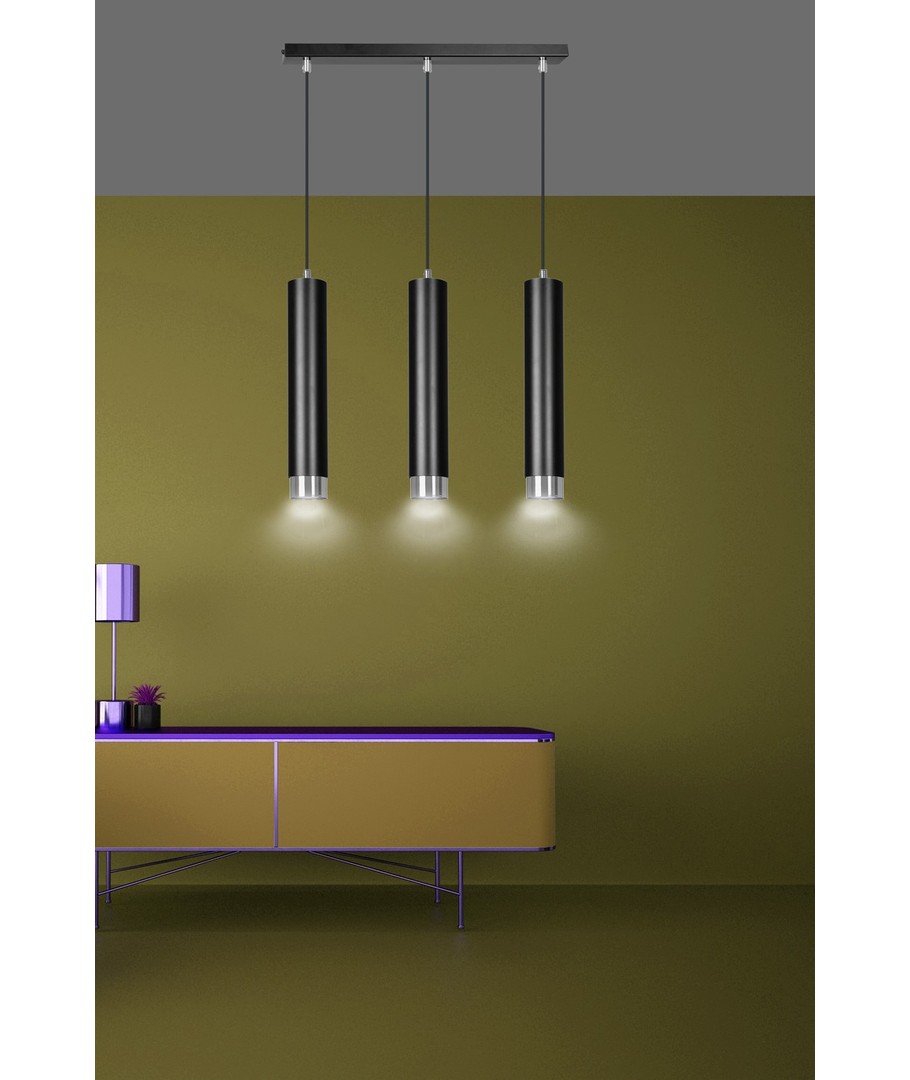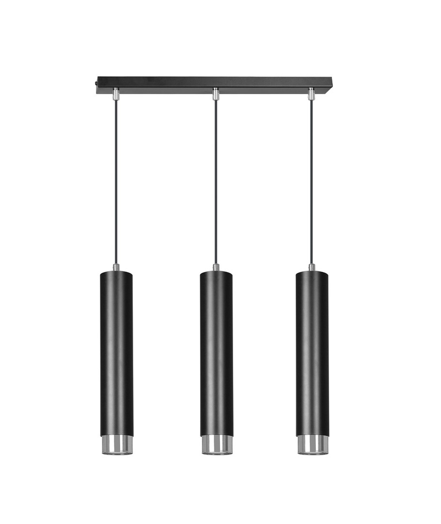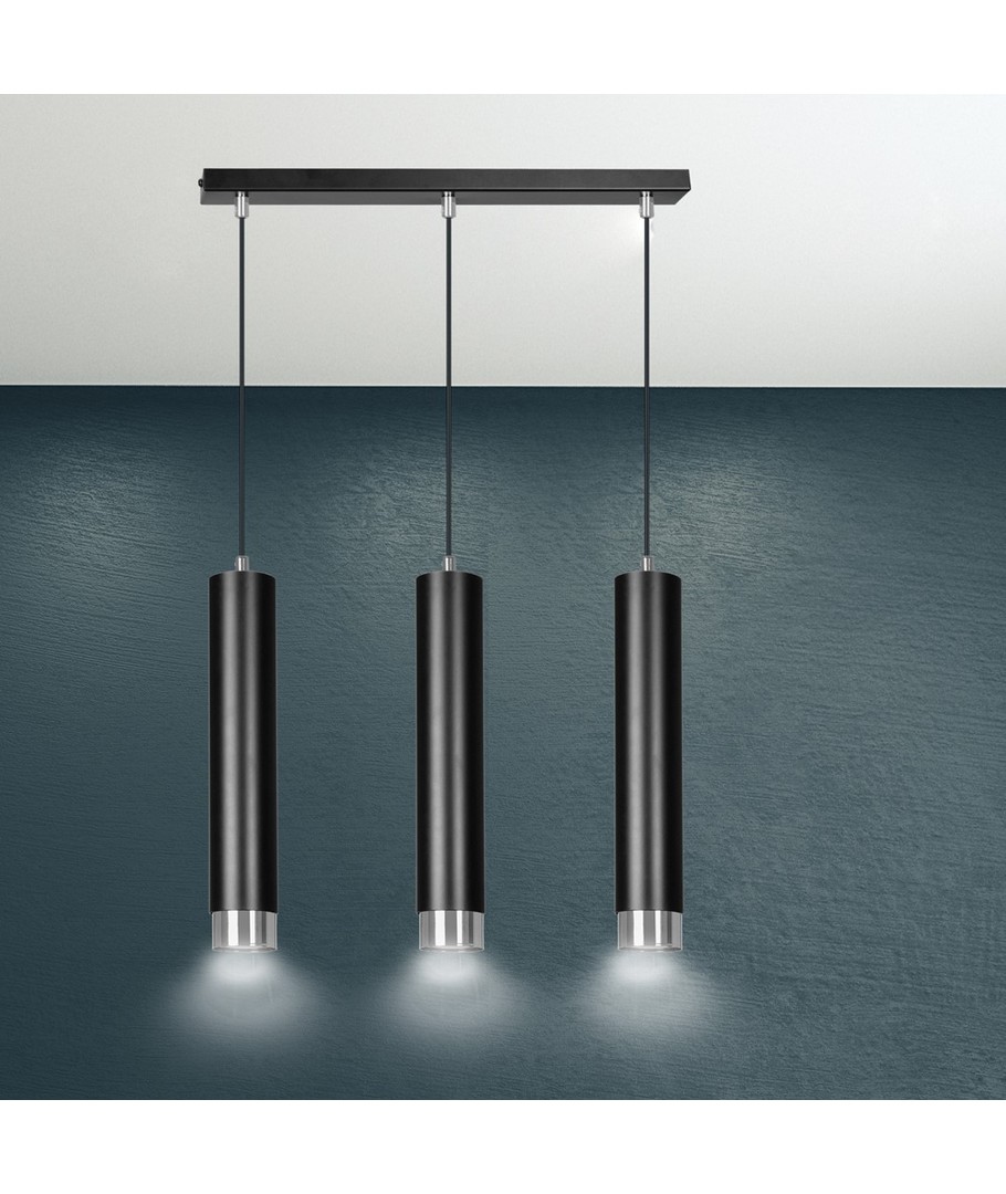 Kibo 3 pendellampe er en sofistikert tillegg til ethvert rom med sitt moderne og stilige design. Den sylinderformede konstruksjonen og kombinasjonen av svart med kromaksenter gjør den til en iøynefallende belysningsløsning som passer perfekt til både stue, kjøkken eller hjemmekontor. Denne pendellampen er laget av pulverlakkert stål, noe som sikrer en holdbar og elegant finish. Med dens justerbare høyde kan du enkelt tilpasse lampen til dine behov, noe som gjør den både funksjonell og estetisk tiltalende.