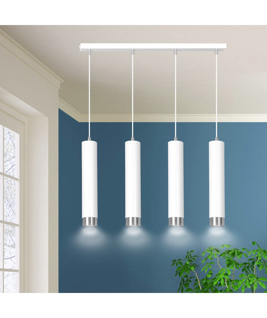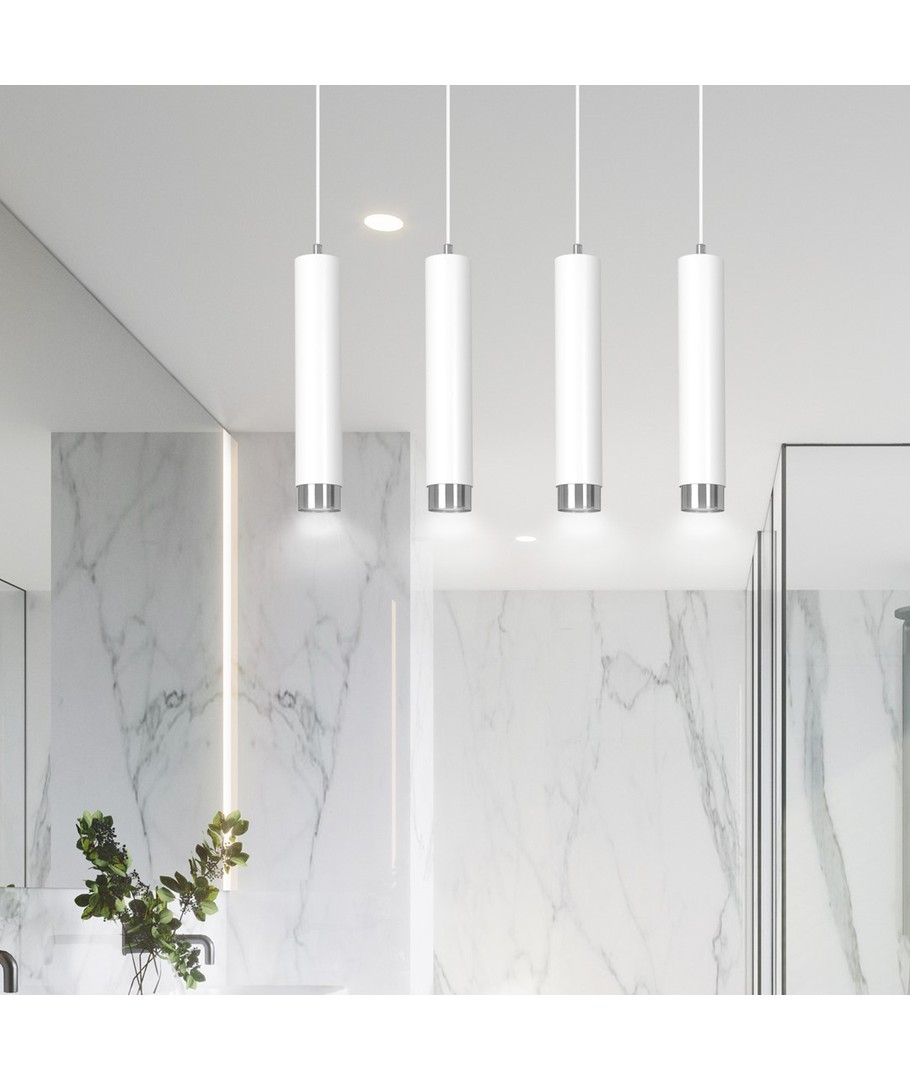 Kibo 4 Hvit/Krom pendellampe er det perfekte valget for deg som ønsker en moderne og elegant belysningsløsning. Med sin stilfulle rørformede konstruksjon tilfører denne lampen et trendy preg til hjemmet ditt.