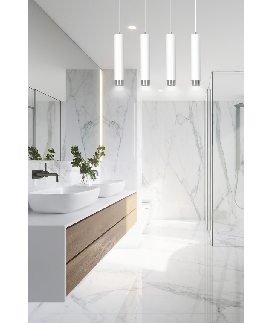 Gi hjemmet ditt et moderne løft med Kibo 4 pendellampen i hvit og krom.