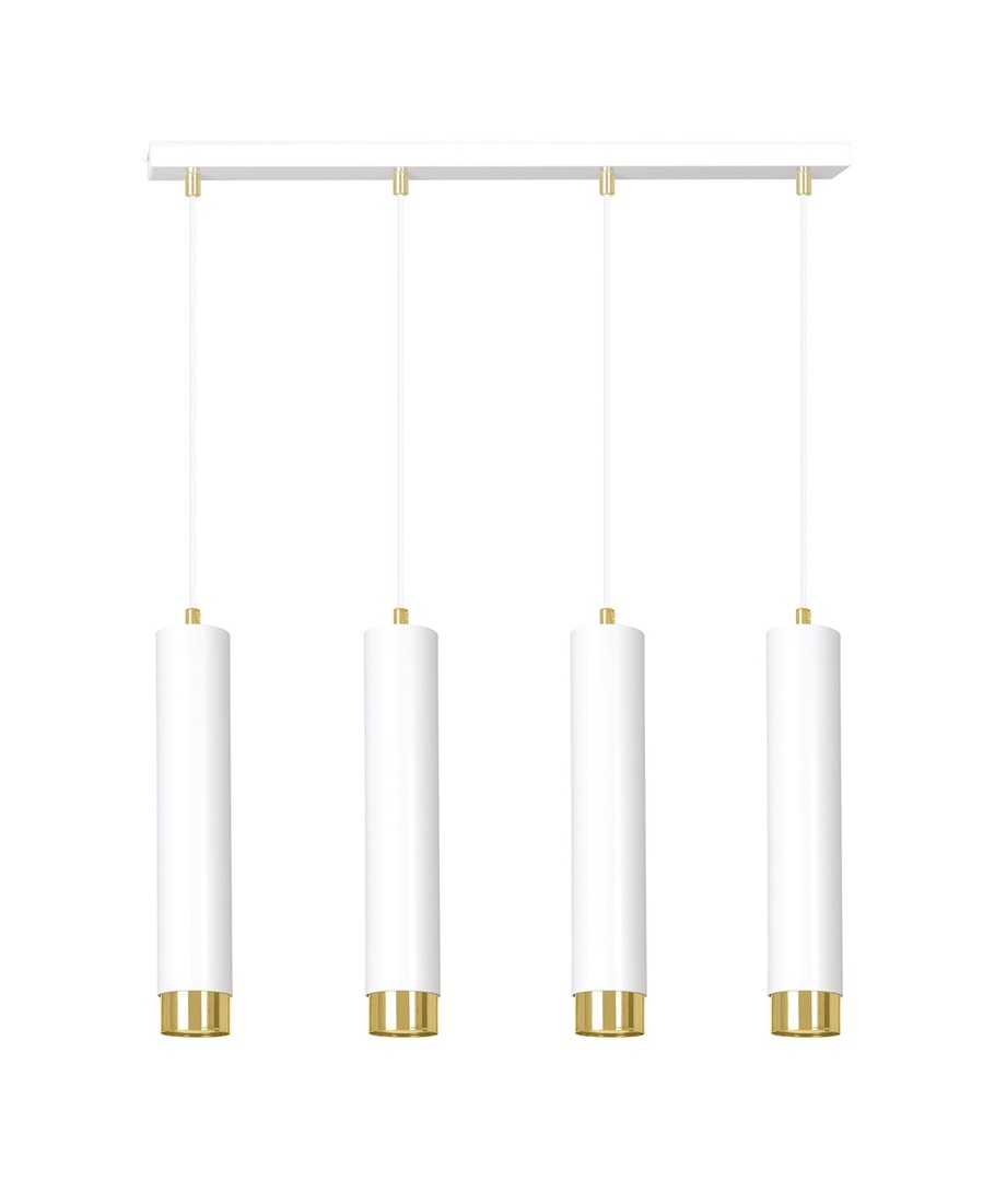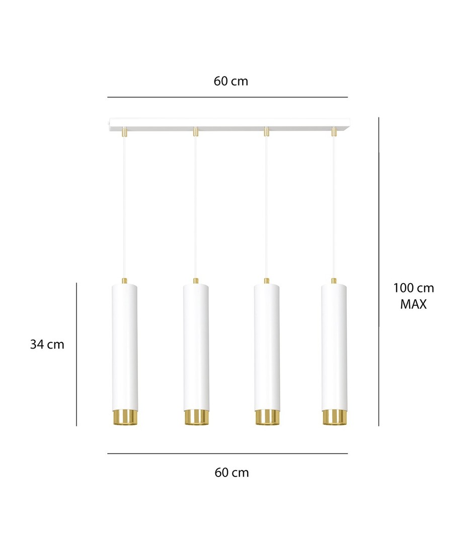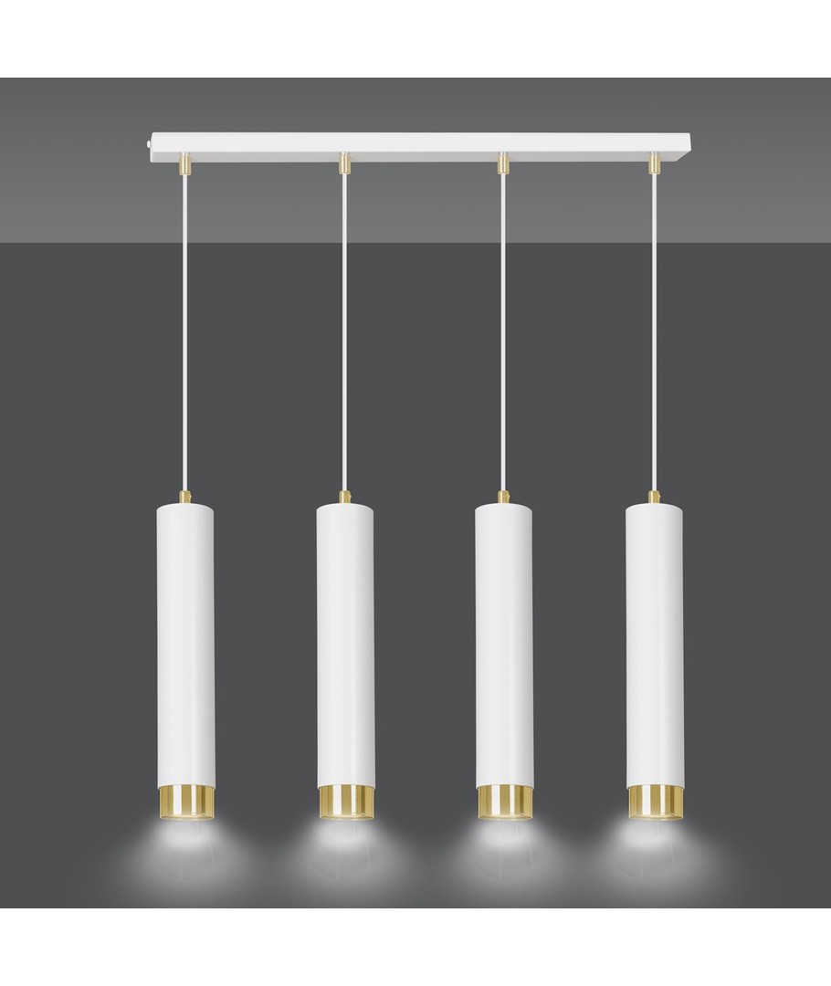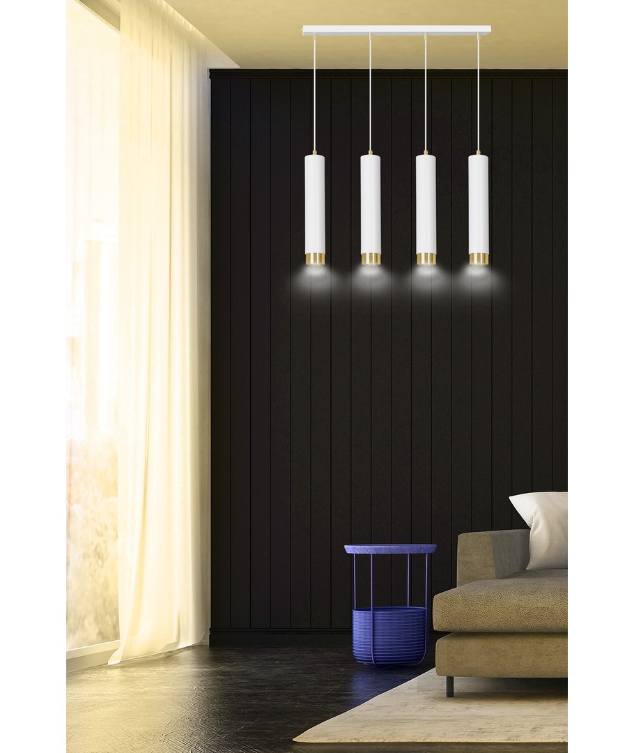 Kibo 4 Hvit/Gull pendellampen representerer et stilfullt valg med sitt moderne rørformede design, som elegant kombinerer hvitt og gull. Denne pendellampen er laget av pulverlakkert stål, noe som gir den en både robust og elegant finish, som passer perfekt inn i enhver innredning. Med sitt allsidige design kan Kibo-lampen lett brukes i både stue, kjøkken eller hjemmekontor, hvor den tilfører et sofistikert preg. Lampen er designet for å kunne tilpasses med justerbar høyde, slik at den kan tilpasses dine spesifikke behov.