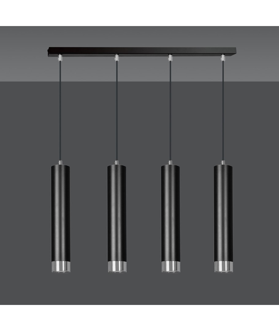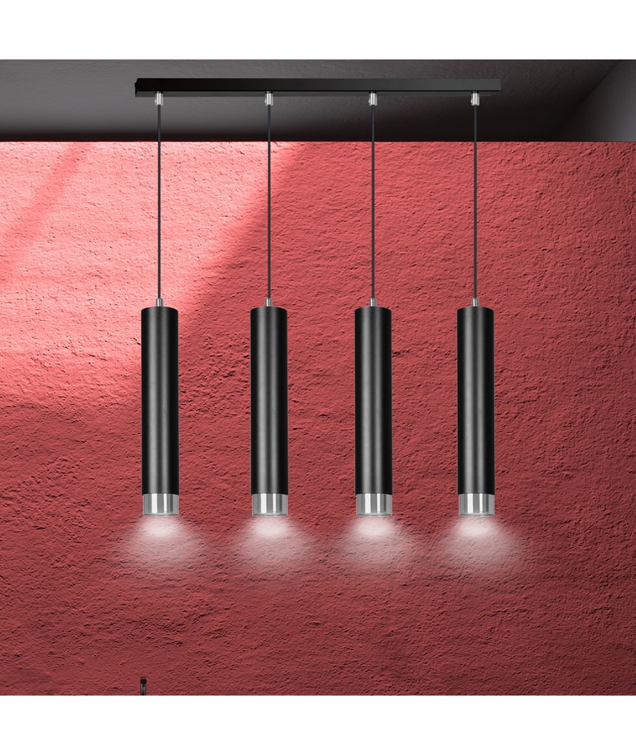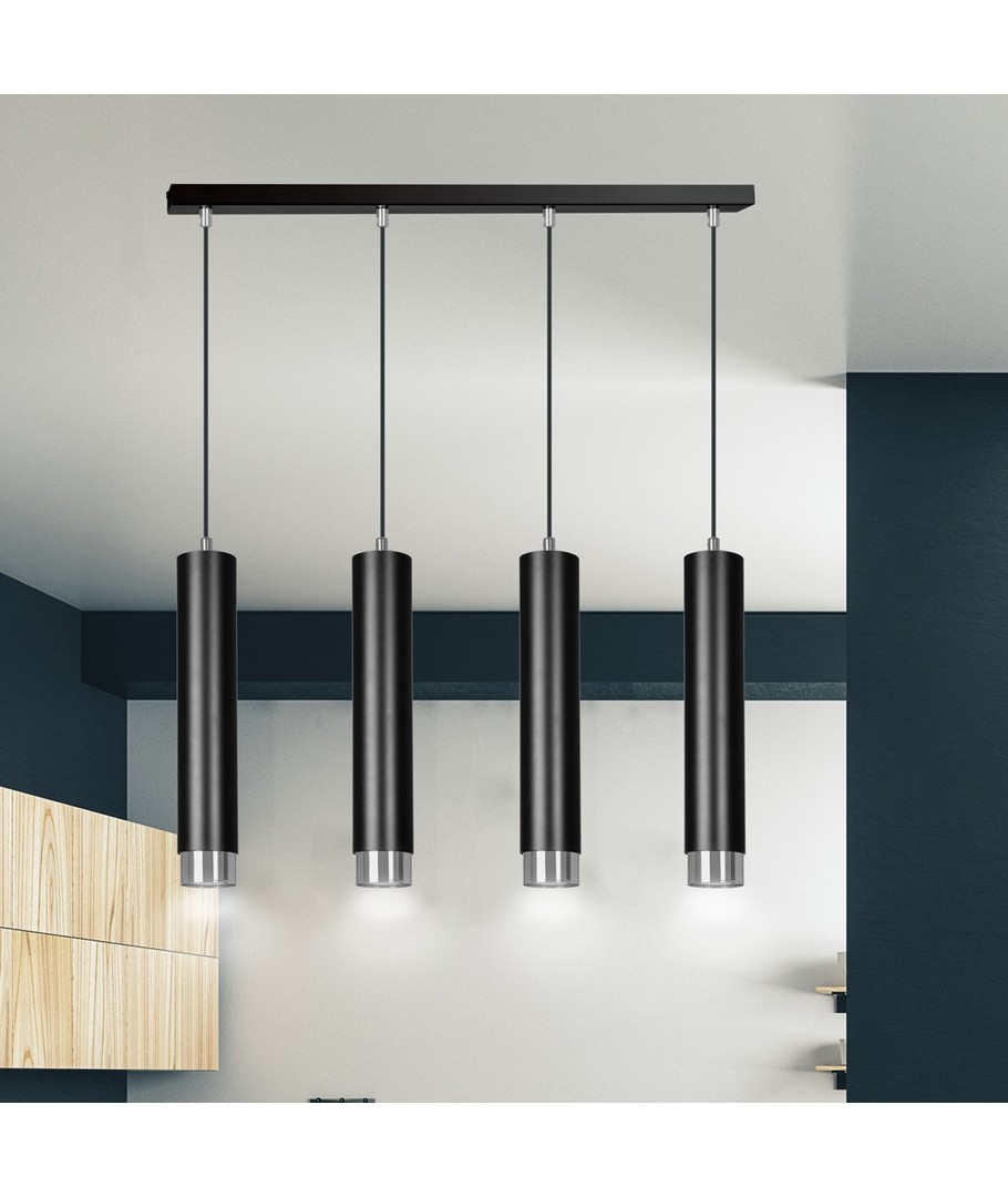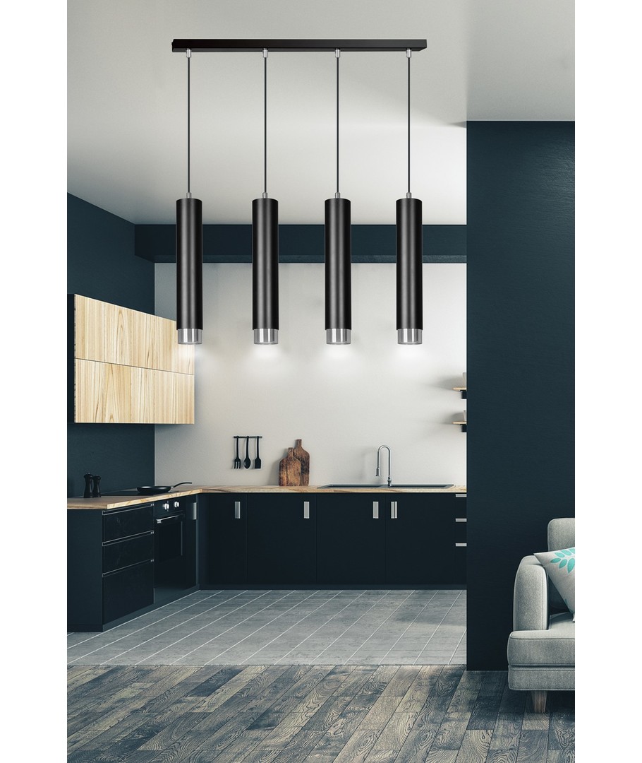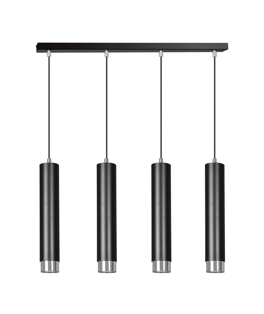 Kibo 4 Sort/Krom pendellampe kombinerer moderne design med funksjonalitet, hvilket skaper en stilfull belysningsløsning for ditt hjem. Med sitt slanke, rørformede design og elegante sorte farge med kromdetaljer, passer lampen perfekt inn i både moderne og klassiske interiører. Den er ideell for bruk i stuen, kjøkkenet eller hjemmekontoret og tilfører et sofistikert preg til ethvert rom. Bygget i slitesterkt pulverlakkert stål, sikrer Kibo-lampen en lang levetid og en tidløs stil.