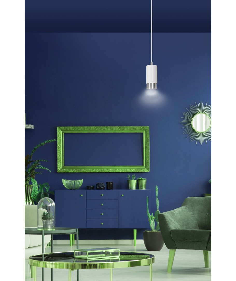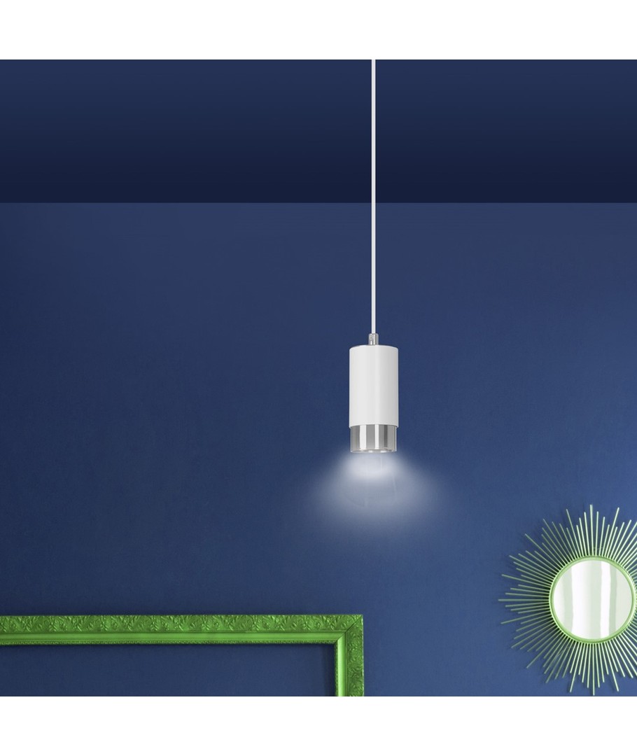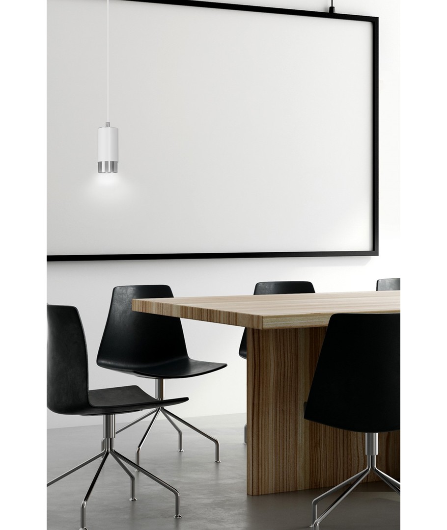 Oppgrader hjemmet ditt med en stilfull pendellampe som gir et moderne preg til ethvert rom. Denne lampen har et elegant design i hvit og krom, og passer perfekt over spisebordet eller i stuen for en sofistikert belysning.