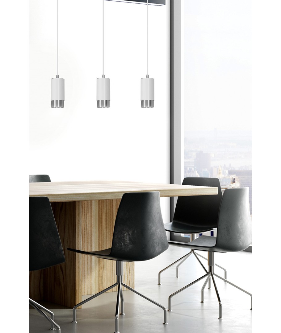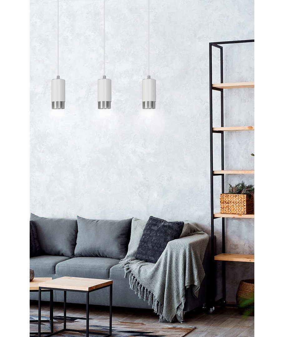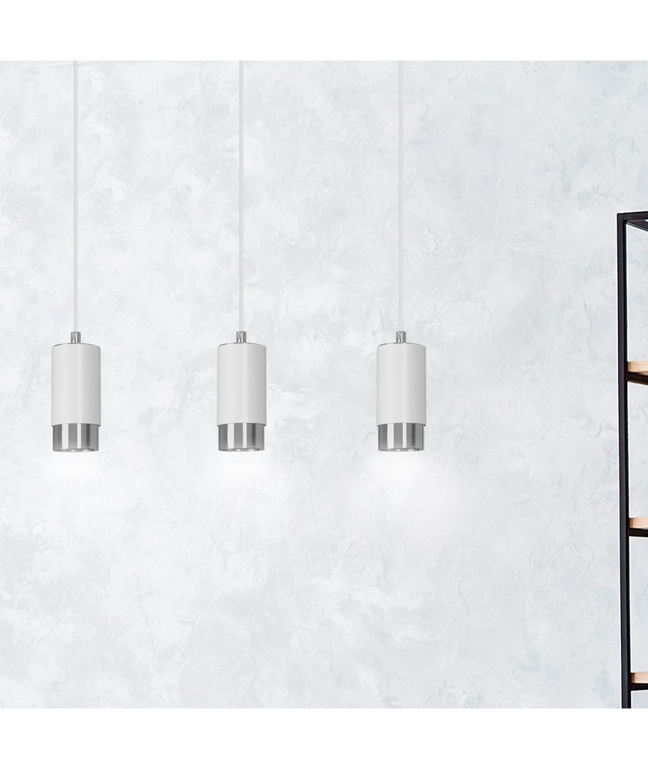 Opplev den elegante Fumiko 3 pendellampe, som kombinerer moderne design med funksjonell belysning. Denne lampen er laget i et stilrent rørformet design som tilfører et trendy uttrykk til ditt hjem. Med dens pulverlakkerte stål i hvit og krom, passer Fumiko perfekt inn i både moderne og klassiske interiører. Den er en ideell belysningsløsning for stuen, kjøkkenet eller hjemmekontoret, hvor den tilfører både stil og lysstyrke. Vær oppmerksom på at lyskilde ikke medfølger, så du har mulighet til å velge den perfekt til dine behov.