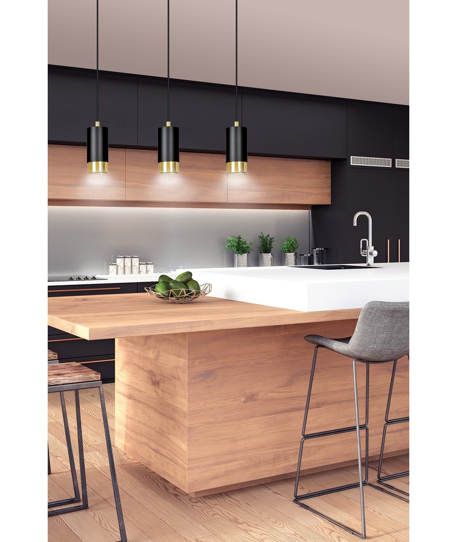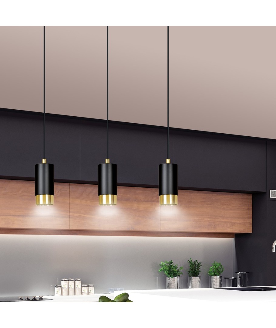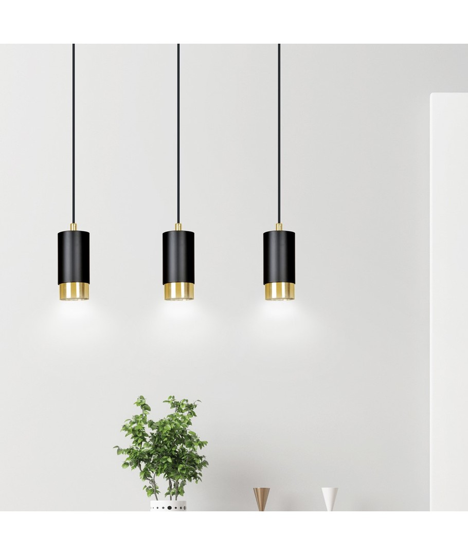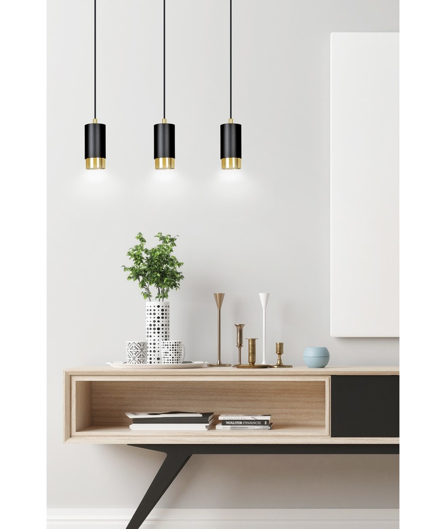 Fumiko 3 Sort/Gull pendellampe er en elegant og moderne belysningsløsning som kombinerer stilfullt design med funksjonalitet. Med dens trendy rørformede konstruksjon i metall og iøynefallende sorte og gull farger, passer Fumiko perfekt inn i enhver innredning. Denne lampen er ideell for å skape et hyggelig eller stilfullt miljø i stuen, kjøkkenet eller hjemmekontoret. Dens justerbare høyde gir mulighet for tilpasning etter ditt spesifikke rom og behov.
