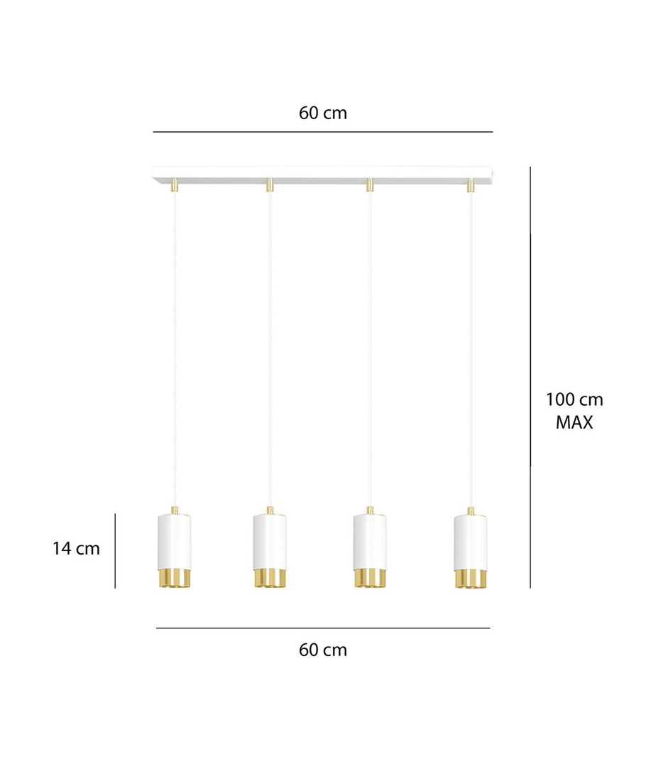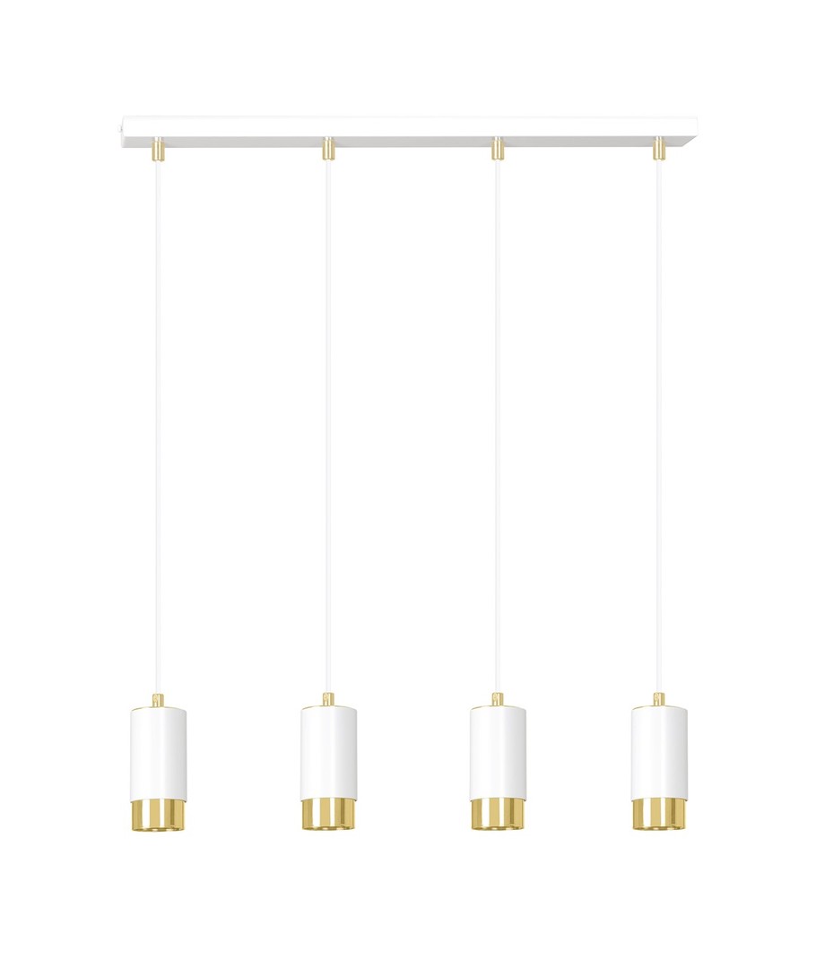 Fumiko 4 Hvit/Gull pendellampen bringer moderne eleganse inn i ditt hjem med sitt stilfulle, rørformede design. Denne pendellampen er laget av høy kvalitet pulverlakkert stål, noe som sikrer både holdbarhet og et elegant utseende. Den kombinerer en hvit finish med sofistikerte gulldetaljer, som passer perfekt inn i alle interiørstiler. Fumiko er en allsidig belysningsløsning ideell for stuer, kjøkken eller hjemmekontorer, hvor den vil tilføre et snev av luksus og funksjonalitet. Til tross for sitt sterke visuelle uttrykk, er lampen svært fleksibel med justerbar høyde, slik at du kan tilpasse den dine behov.