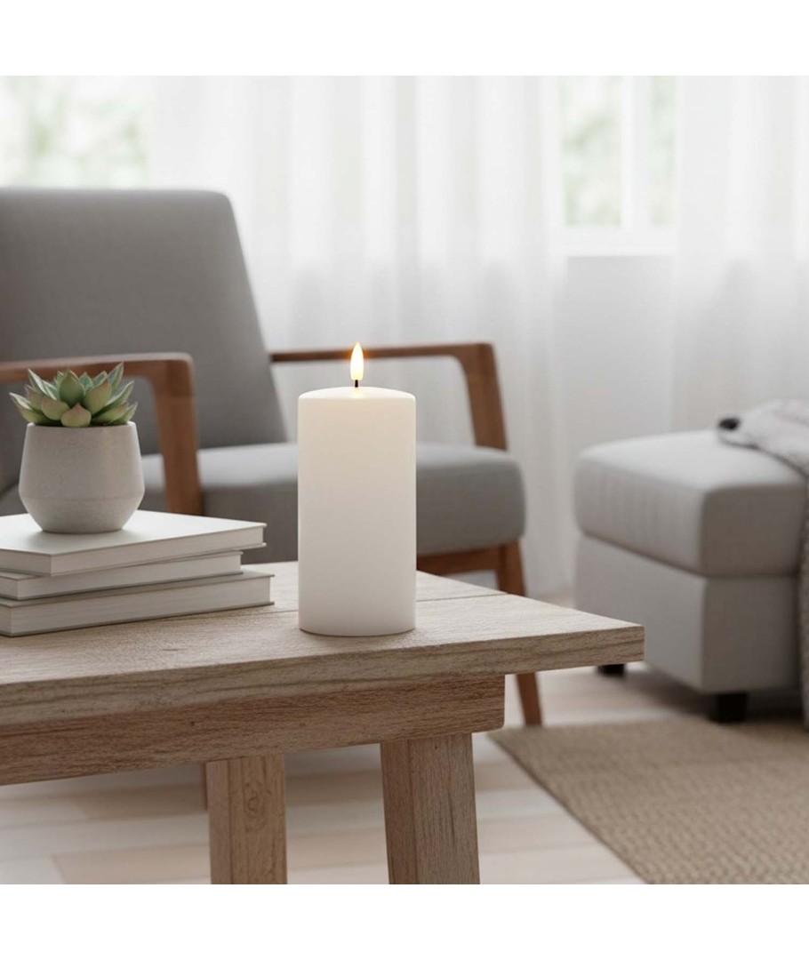 Ø7,5cm, 13.5cm høy, fungerer m. fjernkontroll, timer, ekte stearin