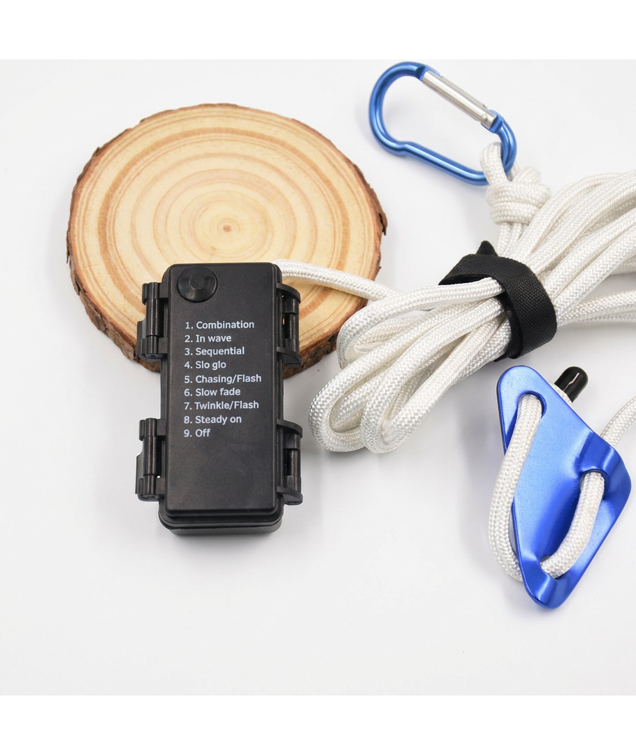 Hvitt tau med RGB-lys passer til både praktiske og dekorative formål, perfekt til utendørsaktiviteter eller kreative prosjekter.