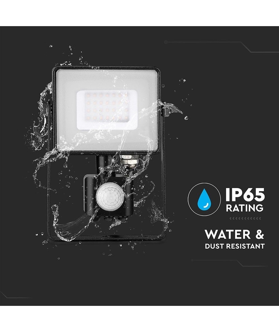Med en IP65-klassifisering er lyskasteren motstandsdyktig mot vannsprut og regn, noe som gjør den perfekt for utendørsbruk. Den robuste konstruksjonen sikrer at den tåler varierende værforhold.