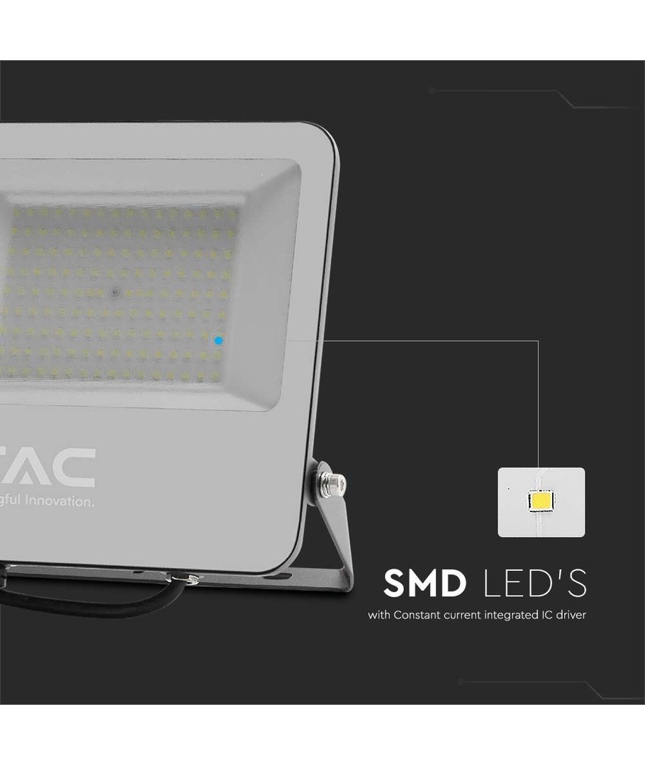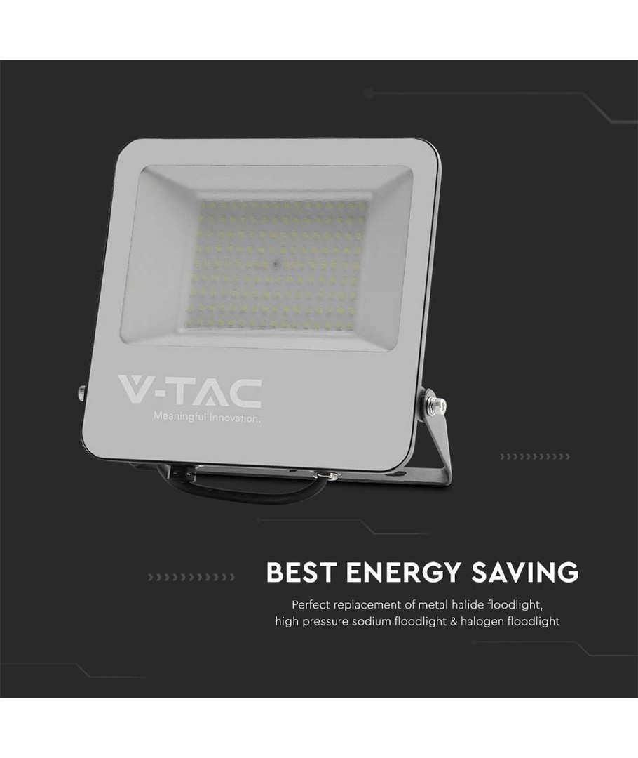 Produktet har integrert lyskilde, noe som sikrer en problemfri installasjon og enkelt vedlikehold. Den robuste konstruksjonen og høye ytelsen gjør V-Tac 100W LED lyskaster til et utmerket valg for enhver utendørs belysningsløsning, enten det gjelder bygg- og anleggsplasser, industriområder eller spesialprosjekter med behov for intensiv belysning.