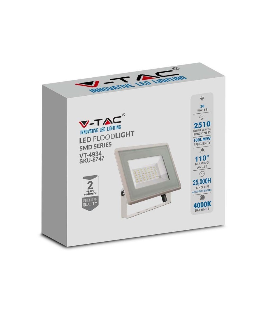 30W lyskaster som har en lysstyrke på 2510 lumen – 33% mer lys enn standard LED-lyskaster!