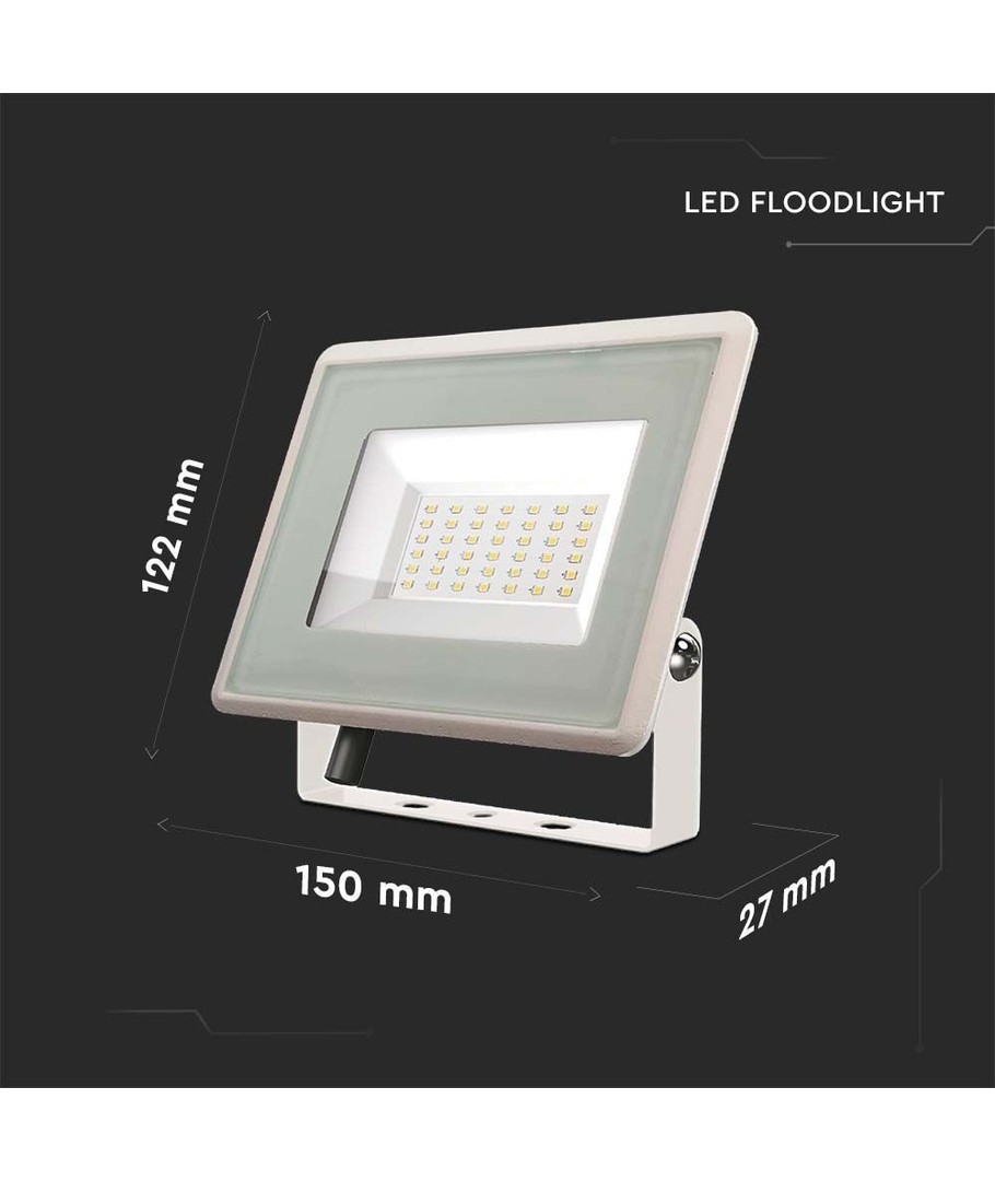 Med kompakte dimensjoner på 122 x 150 x 27 mm er denne lyskasteren både diskret og lett å installere på de fleste steder. Det robuste designet støttes av en IP65-klassifisering, som sikrer at lyskasteren tåler vannsprut og regn, noe som gjør den ideell for utendørs bruk.