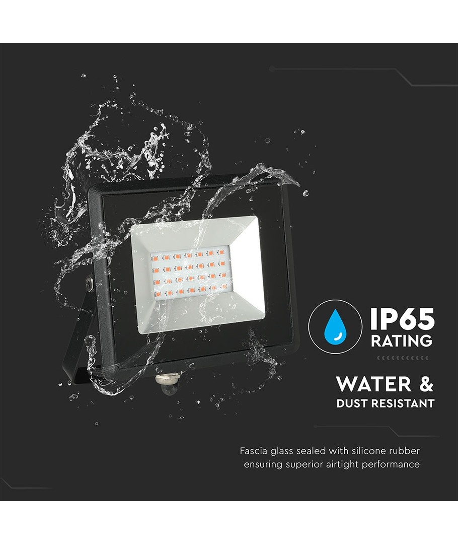 Denne LED-projektøren er bygget for å tåle tøffe værforhold, med en IP65-rating som beskytter mot vannsprut og regn. Dette gjør den ideell for utendørs bruk, og gir deg trygghet om pålitelig drift under alle værforhold.