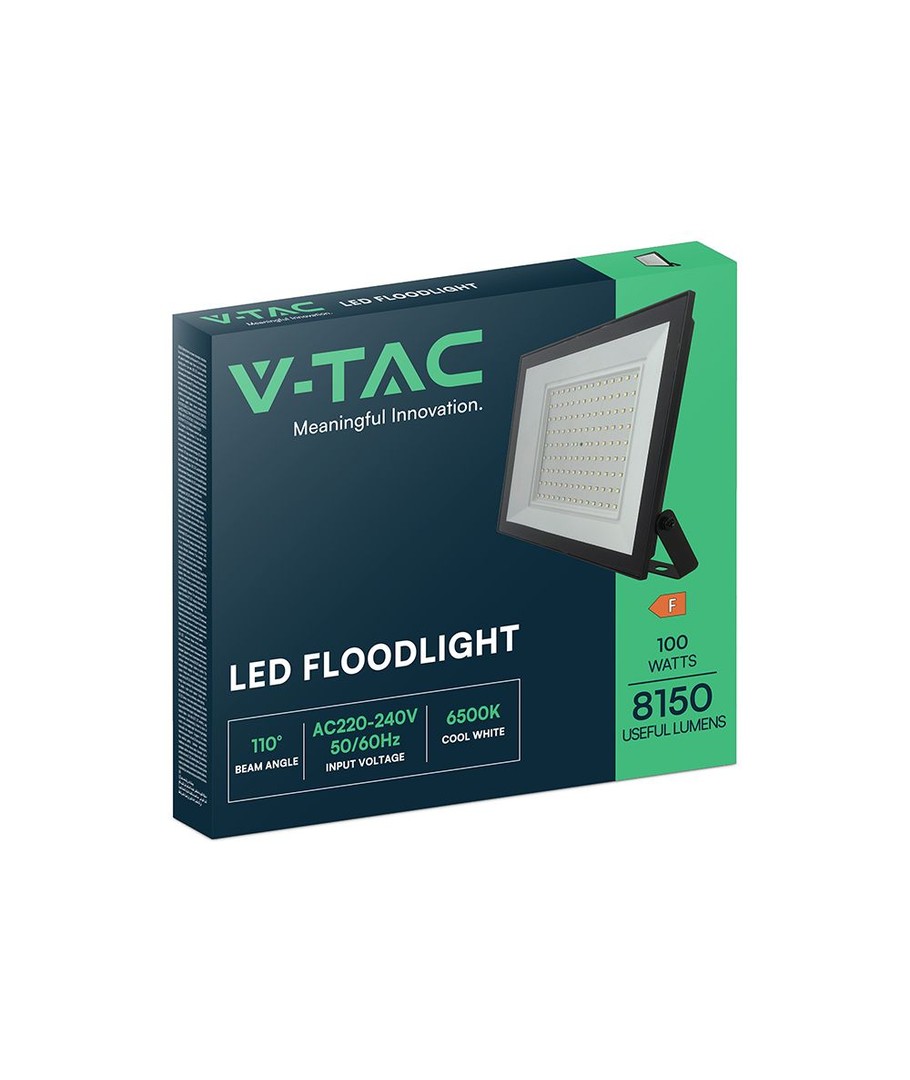 V-Tac 100W LED-lyskasteren leveres med en integrert lyskilde, noe som gjør den til et praktisk og brukervennlig valg for aktiviteter og belysning utendørs.