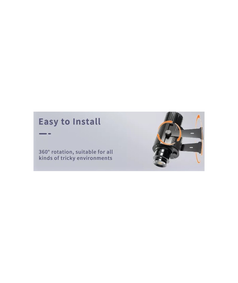 Projektøren kan lyse opp logoen din på en vegg, tak eller lignende mellom 1 og 5 meter unna for 35W, 5-10 meters avstand for 100W.