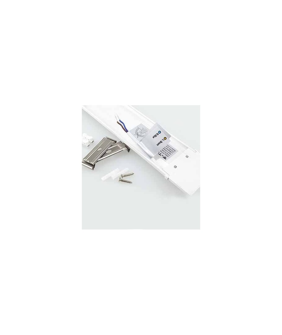 Merk at denne ikke har innebygd seriekobling. Om det skal kobles flere armaturer i serie så anbefaler vi i stedet våre vanntette modeller med kabelinnføring i begge ender.