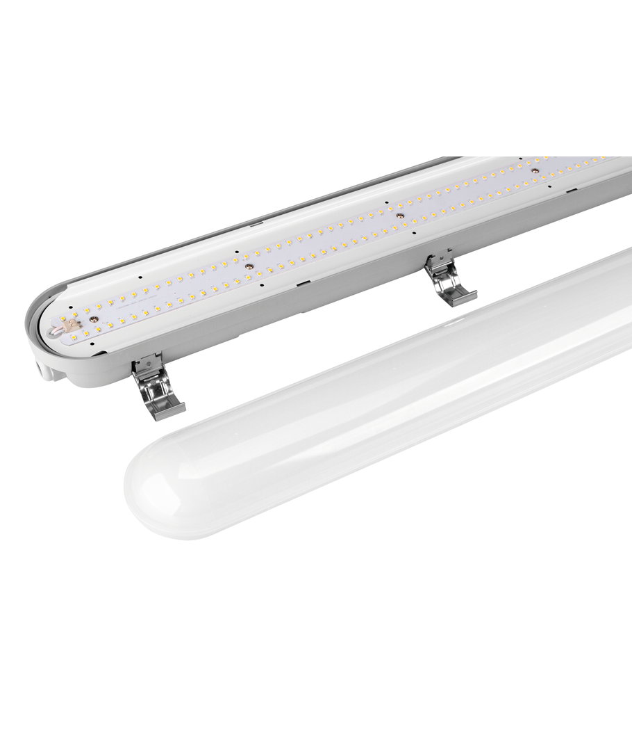 Profesjonell 120 cm LED armatur med integrert dagslyssensor, som automatisk regulerer lysstyrken i forhold til det naturlige lyset i rommet. Armaturen gjør det mulig å oppfylle TEK17 uten ekstra styring eller kompliserte installasjoner.