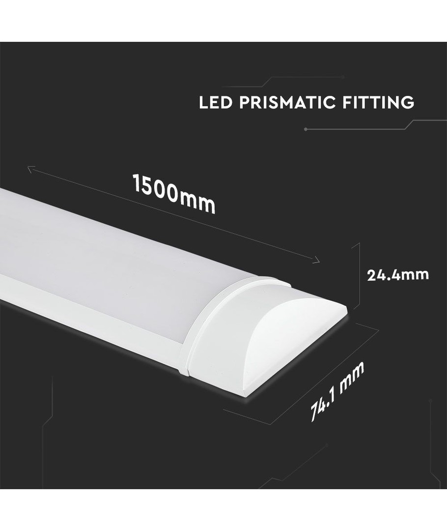 Armaturen har dimensjoner på 1500 x 24 x 74 mm og er IP20-klassifisert, noe som betyr at den ikke er vannbestandig. Den kommer med en integrert lyskilde som gjør den enkel å installere og bruke.