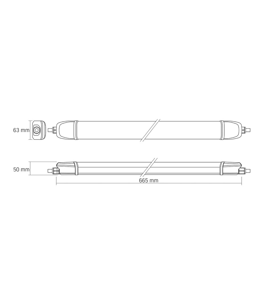 Lampen må kobles til en 230V forsyning og er sammenkoblingsbar, noe som gjør den perfekt for en rekke monteringsalternativer. Med mål på 63 x 665 x 50 mm, er produktet enkelt å installere i de fleste miljøer.