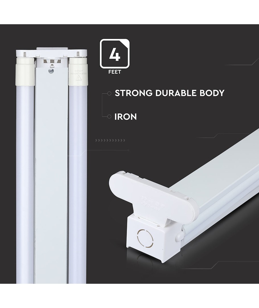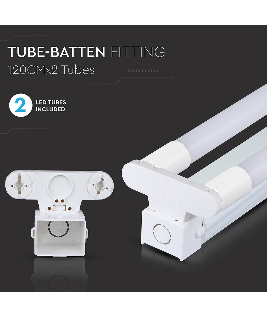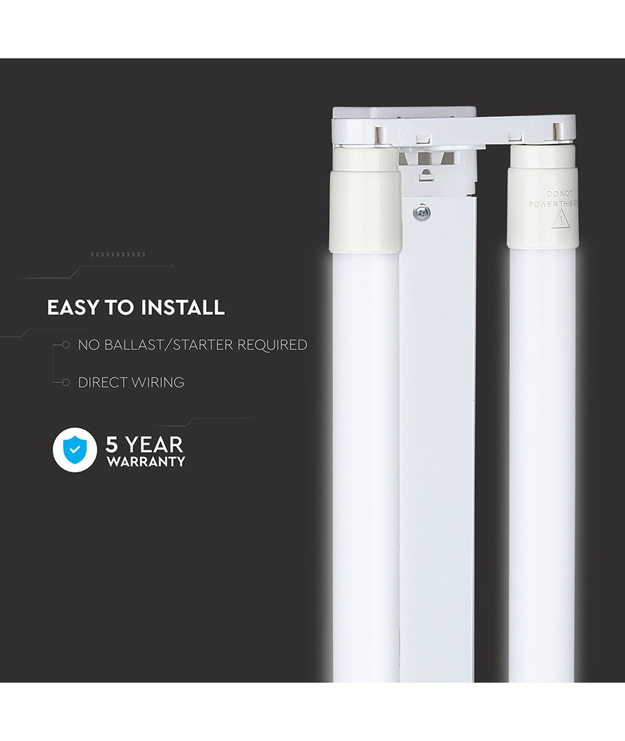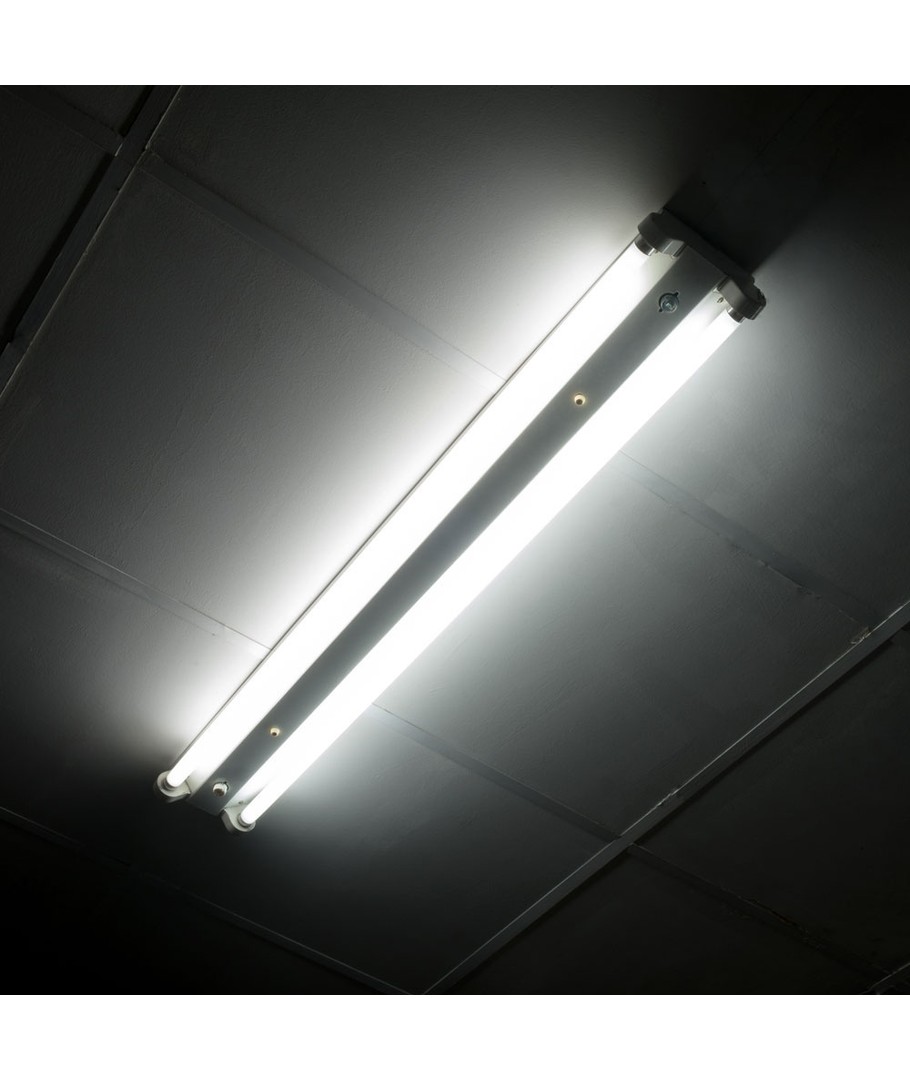 • Dobbeltarmatur: Designet for å romme to 18W LED rør, noe som gir en kraftig og jevn lysfordeling.