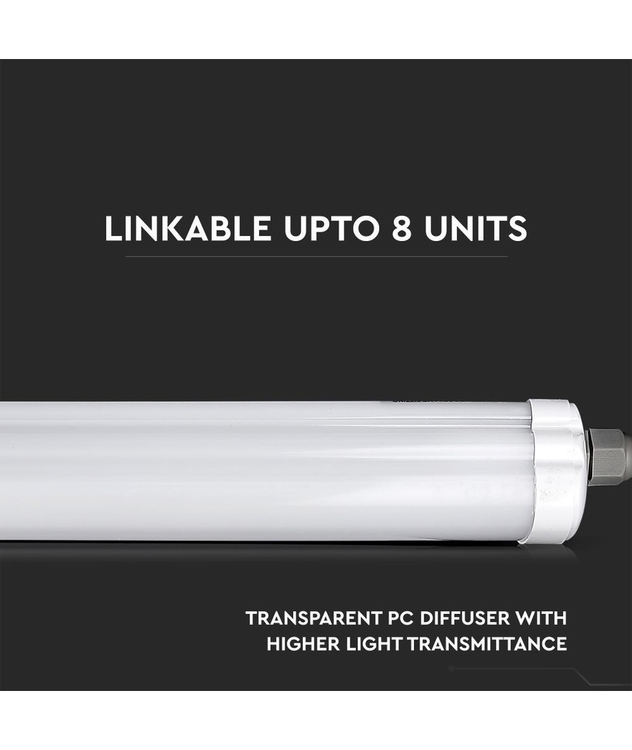 - V-Tac vanntett 48W komplett LED armatur - 150 cm, 120lm/W, IP65, gjennomgangskobling, 230V