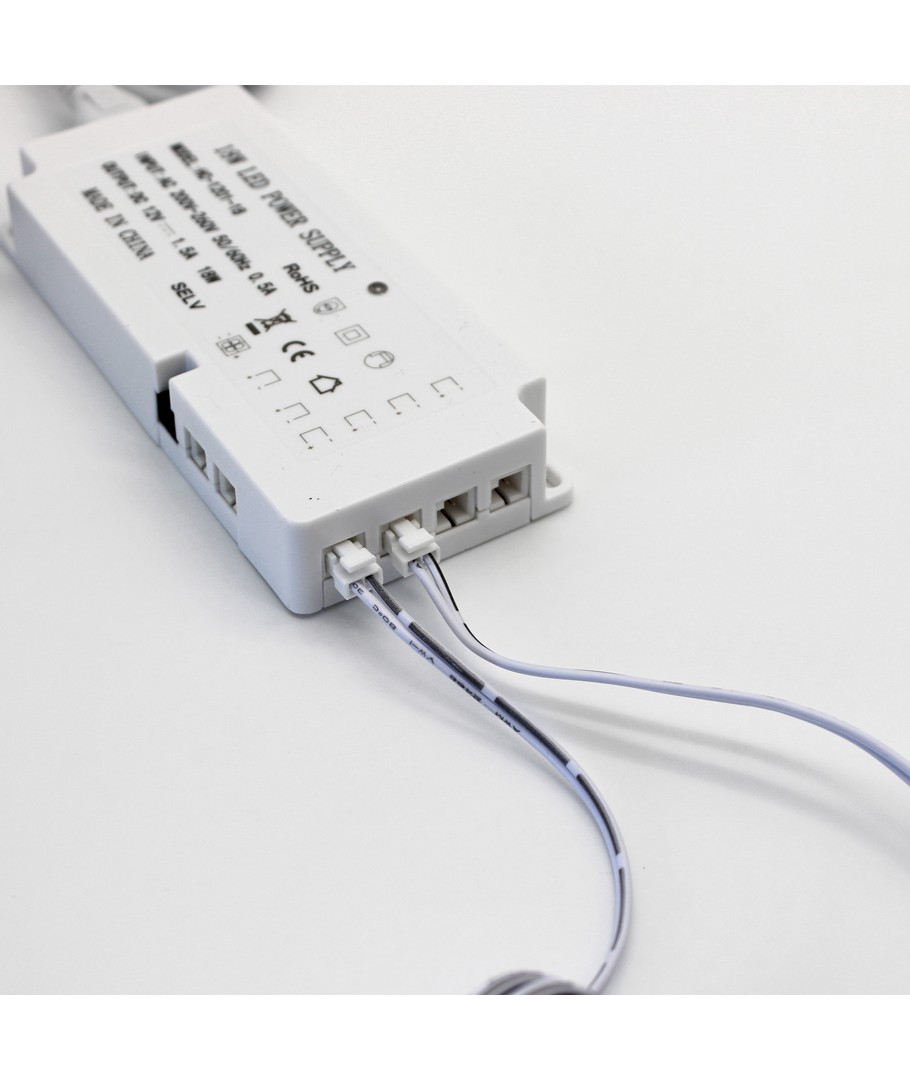 Strømforsyningen har målene: 120x55x20mm og tar derfor nesten ingenting. Strømforsyningen kan enkelt skjules oppå overskap mm.