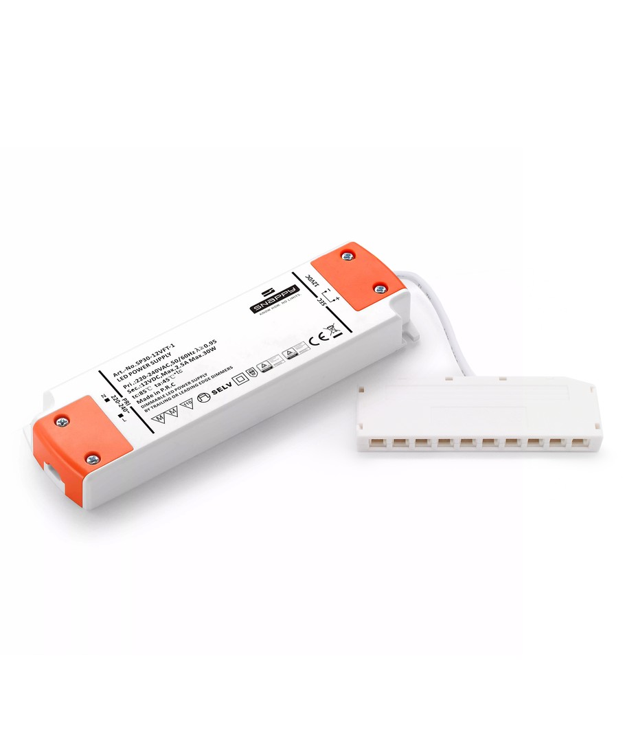 De små og praktiske spottene kobles enkelt til den dimbare strømforsyningen og strømforsyningen kobles til standard 230V. Hver møbelspot har en 2 meter lang ledning med dupontplugg.