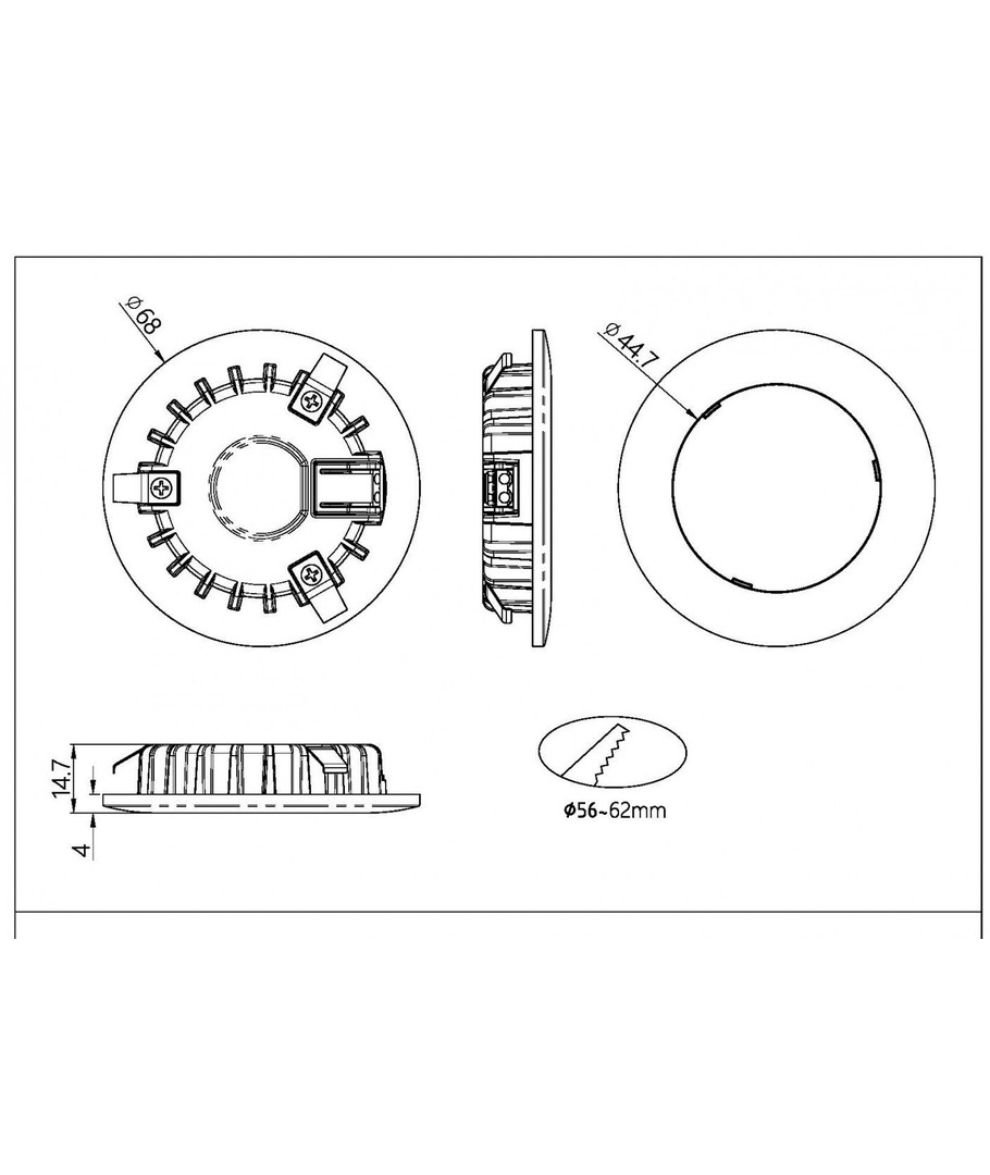 12V/24V, hull: Ø7,5 cm, mål: Ø8,5 cm, hvit kant