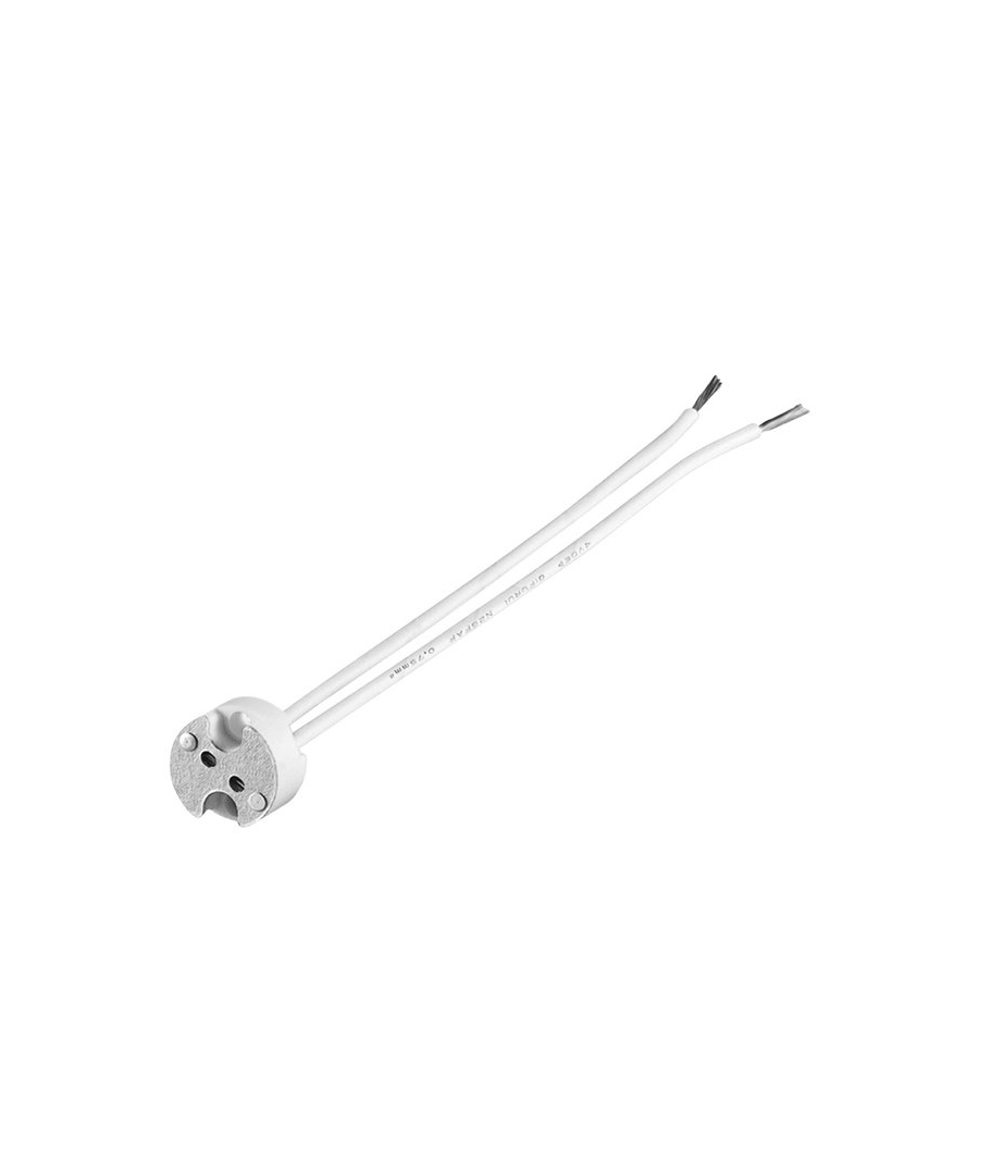 MR16 sokkel, keramisk, med ledning og holder til downlight. Keramisk sokkel.