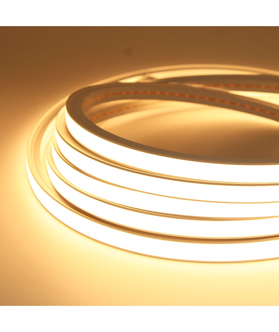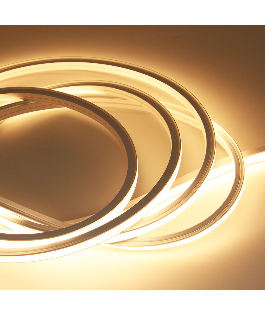 Neon Flex LED-stripen har en fargetone på varm hvit (2800K), som gir en behagelig og avslappende atmosfære. Denne varme fargetonen bidrar til å skape en koselig og innbydende stemning.