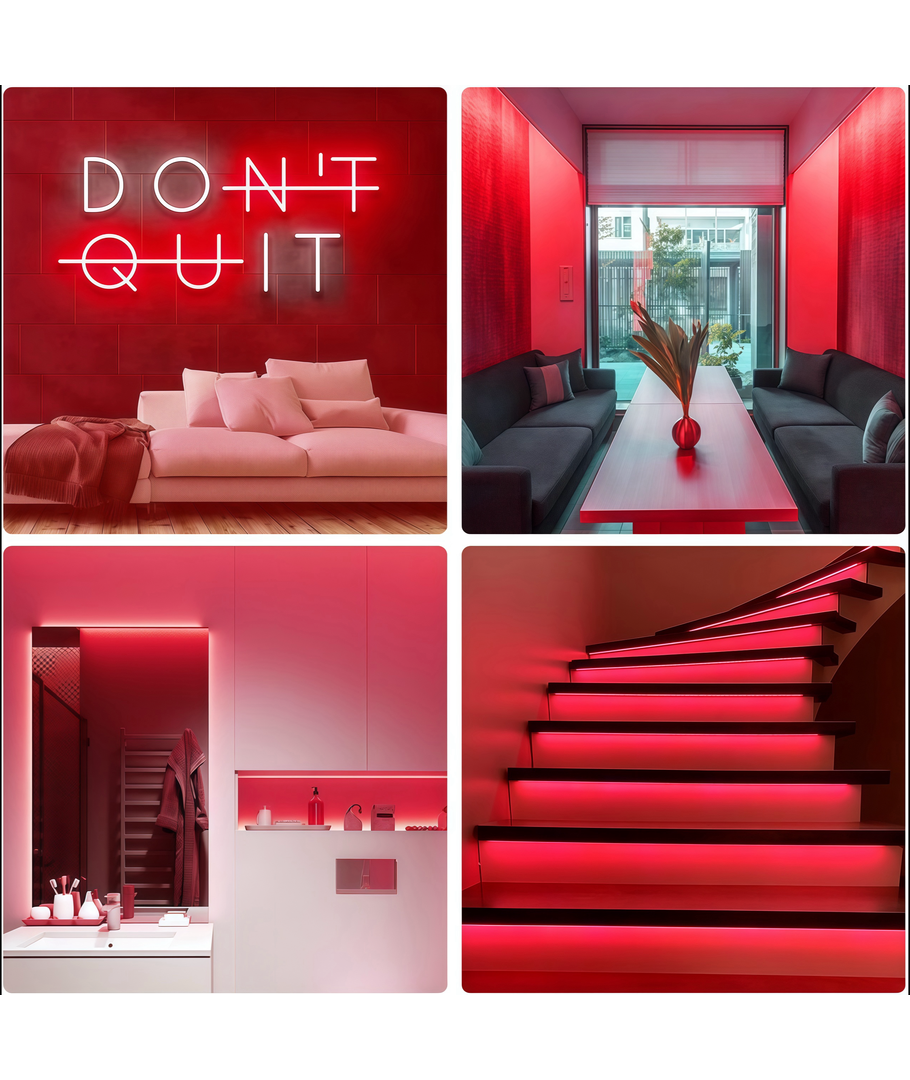 Velg rød 8x16 CLIP-ON Neon Flex LED for en løsning som kombinerer estetikk med ytelse, og opplev forskjellen som målrettet belysning kan gi til dine omgivelser.