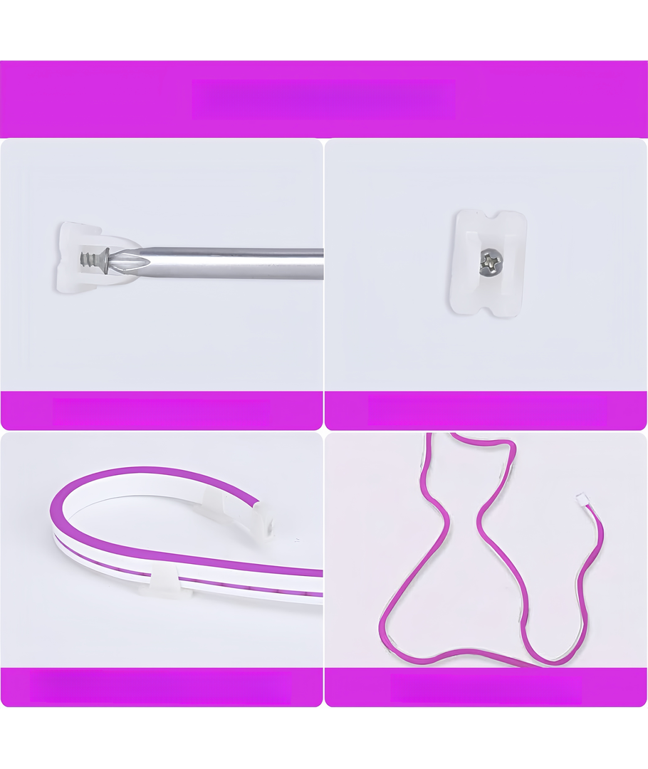 Enten du vil gi et moderne preg til hjemmet ditt, eller ønsker å tiltrekke oppmerksomhet til bedriften din, vil vår lilla CLIP-ON Neon Flex LED være et praktisk og stilfullt valg. Med enkel installasjon og vedlikehold er dette en problemfri løsning for alle dine belysningsbehov.