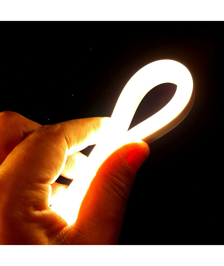 Oppgrader belysningen med vår energieffektive 8,5W/meter Neon Flex LED stripe. Perfekt for å skape en elegant og innbydende atmosfære i ethvert rom eller utendørsområde.