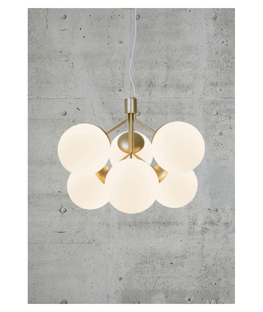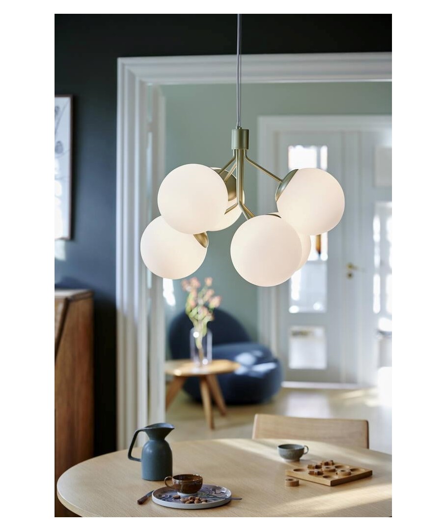 Kombinasjonen av messing og opalglass skaper et glamorøst og elegant designuttrykk.